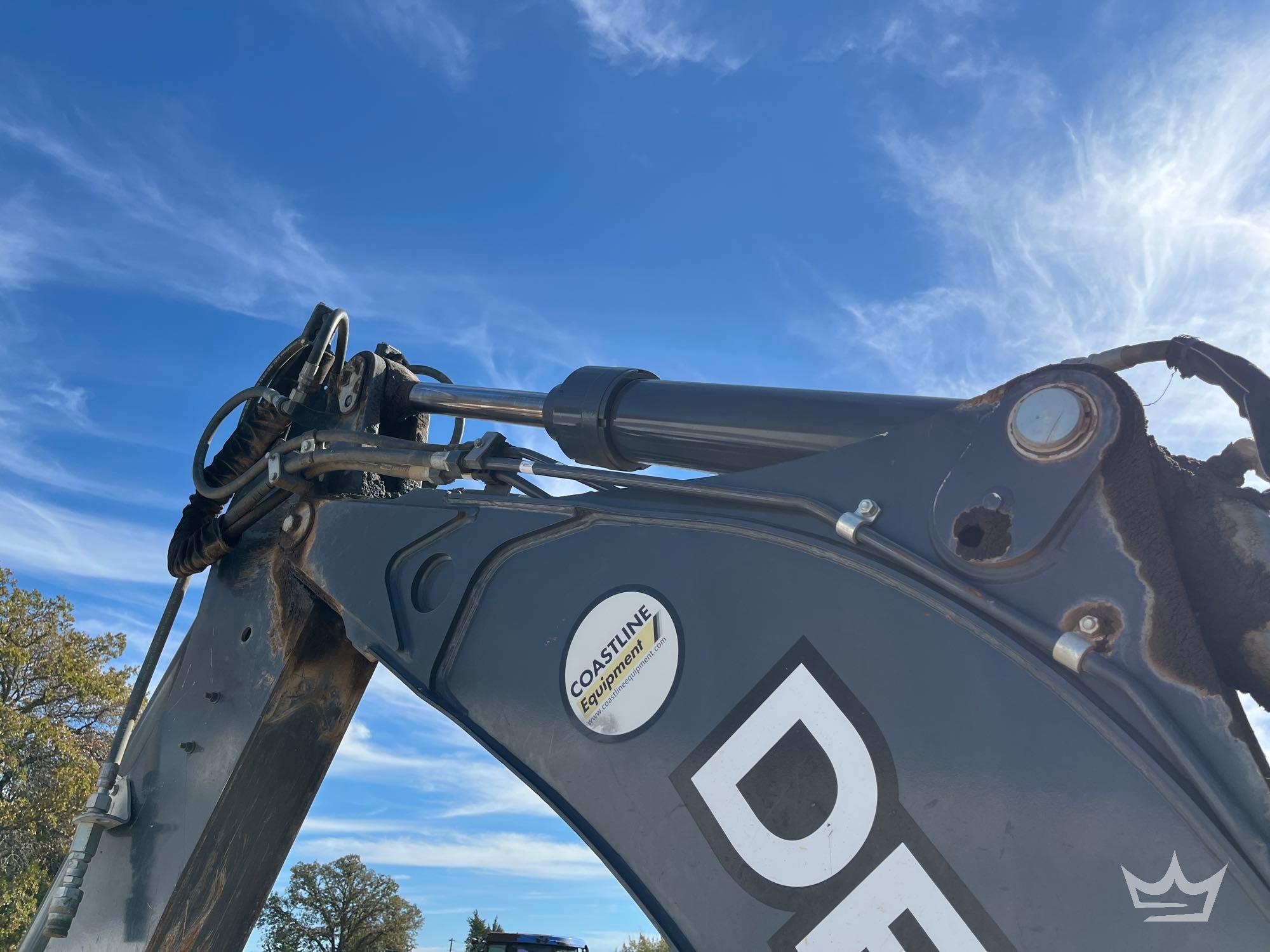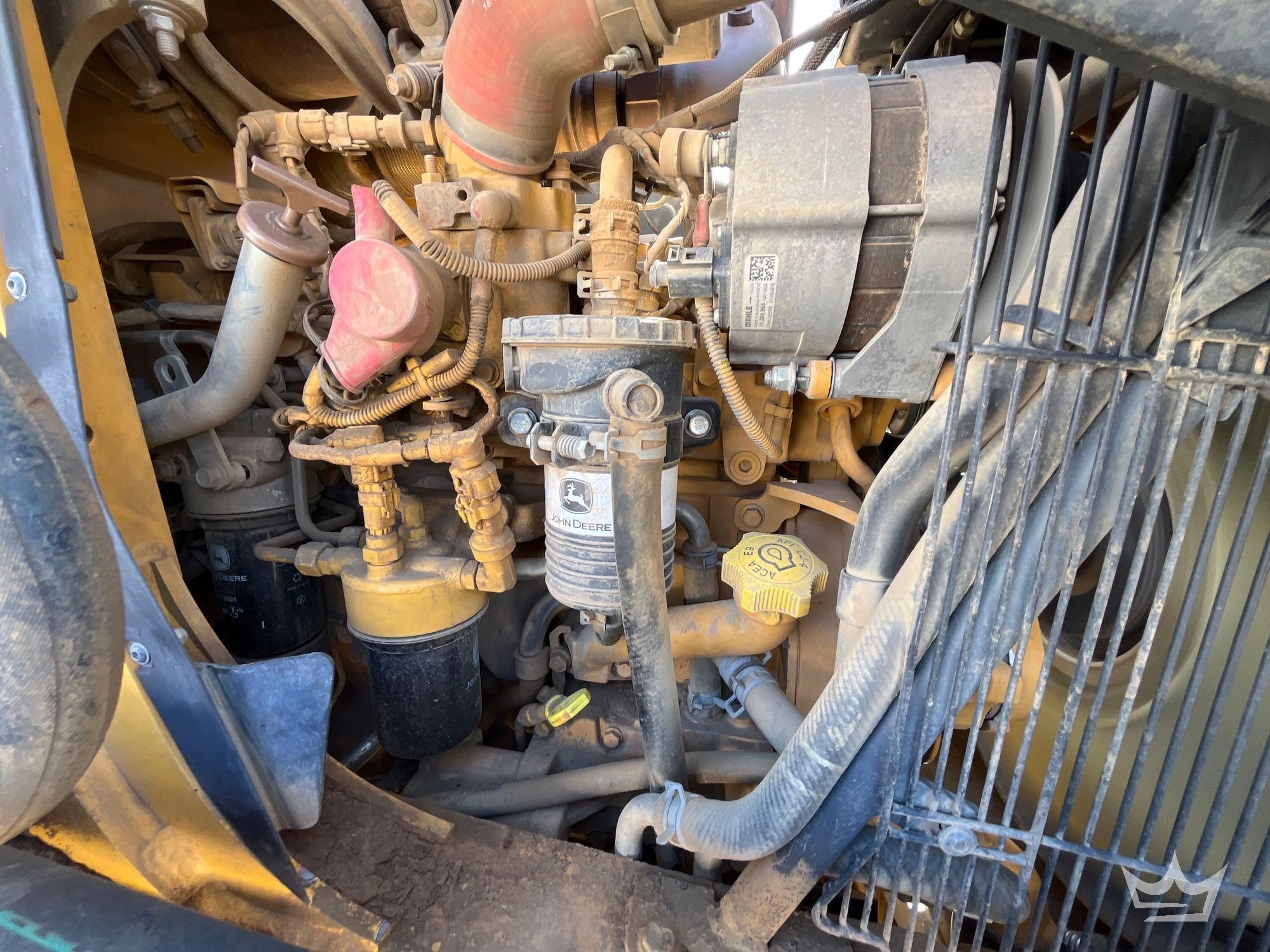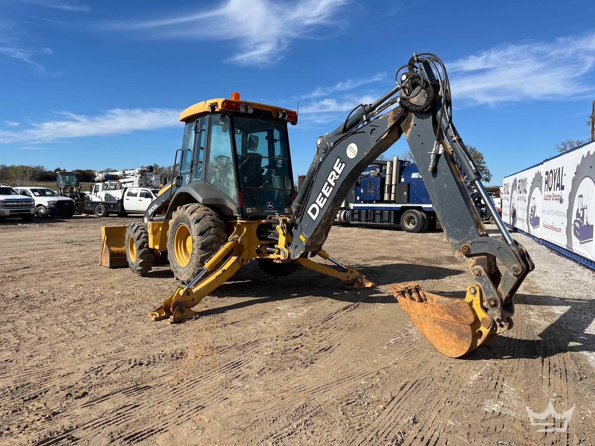SN: 1T0310SLAKF350024, Hours Read: 5,170 hours. Pwd by a John Deere 4045HT096 4.5L Turbo Diesel Engine, PowerShift Transmission. Equipped with John Deere 1.31yd general purpose loader bucket with bolt on cutting edge, manual coupler, rear digging tooth bucket, dipper plumbed for hydraulics, dual rear hydraulic stabilizers, joystick front controls, pilot rear controls, adjustable throttle, AM/FM stereo, work lights, EROPS enclosed cab. Runs, drives, and operates, Limited function check completed at check in.