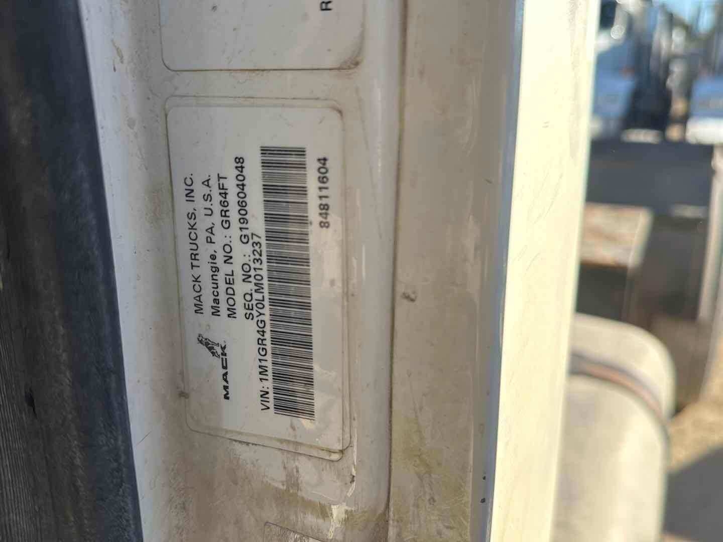 (Atascosa. TX) 2020 MACK GRANITE VIN/SN: 1M1GR4GY0LM013237, GVW:52,320, ENGINE: MP8, ENGINE STARTS: YES, ODOMETER READS: 315,213 MILES, TRANSMISSION: 10 SPEED, SUSPENSION: SPRING, CHALLENGER VAC PUMP, TIRES 11R24.5, INTERLOCKING AXLE, PTO ITEM# 19989