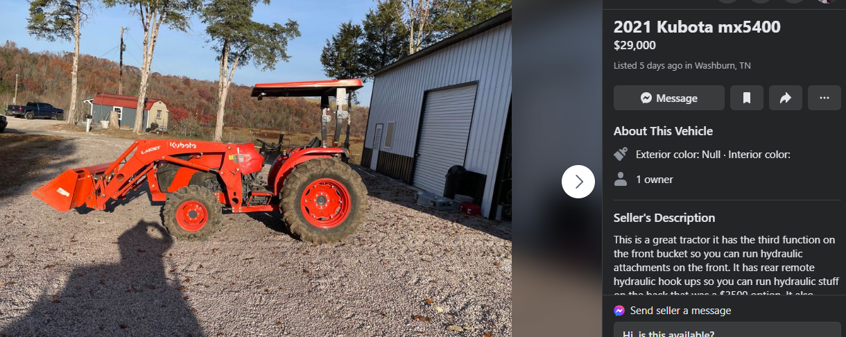 What FB group I were these ads posted in?If you list a gear drive MX5400 for $36k your going to be waiting a coon's life for a buyer. I'm going to say, list it at $28 and hope to get $26. The market is flooded with used stuff right now.