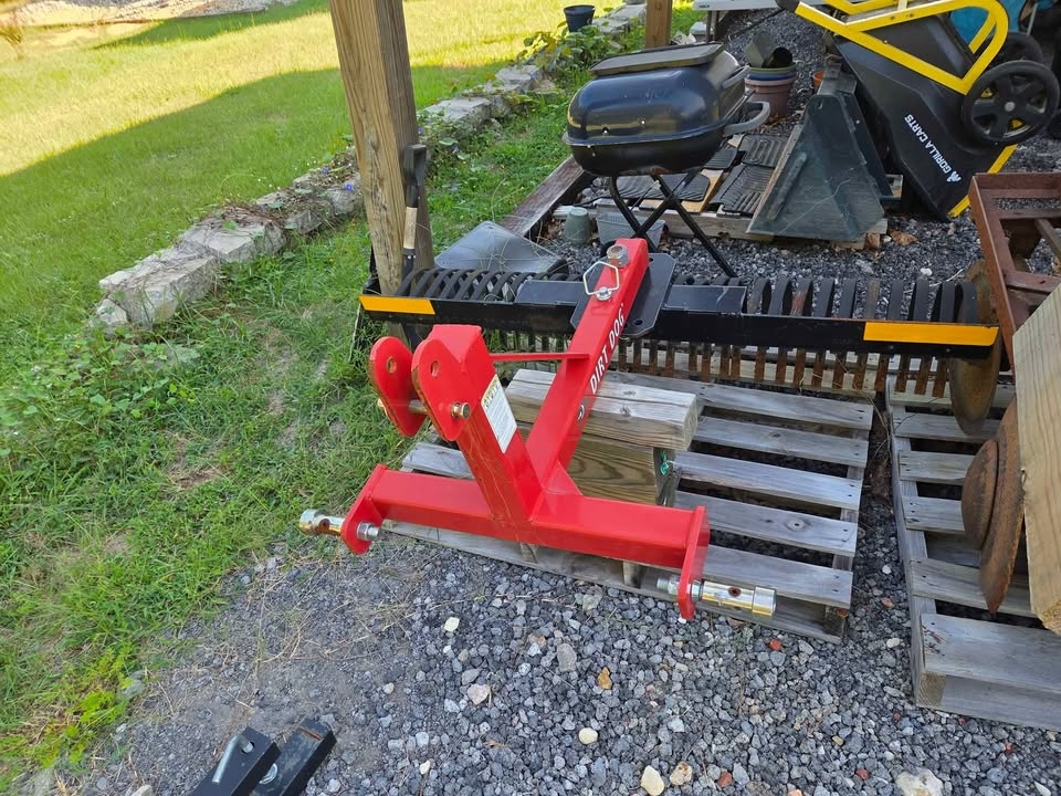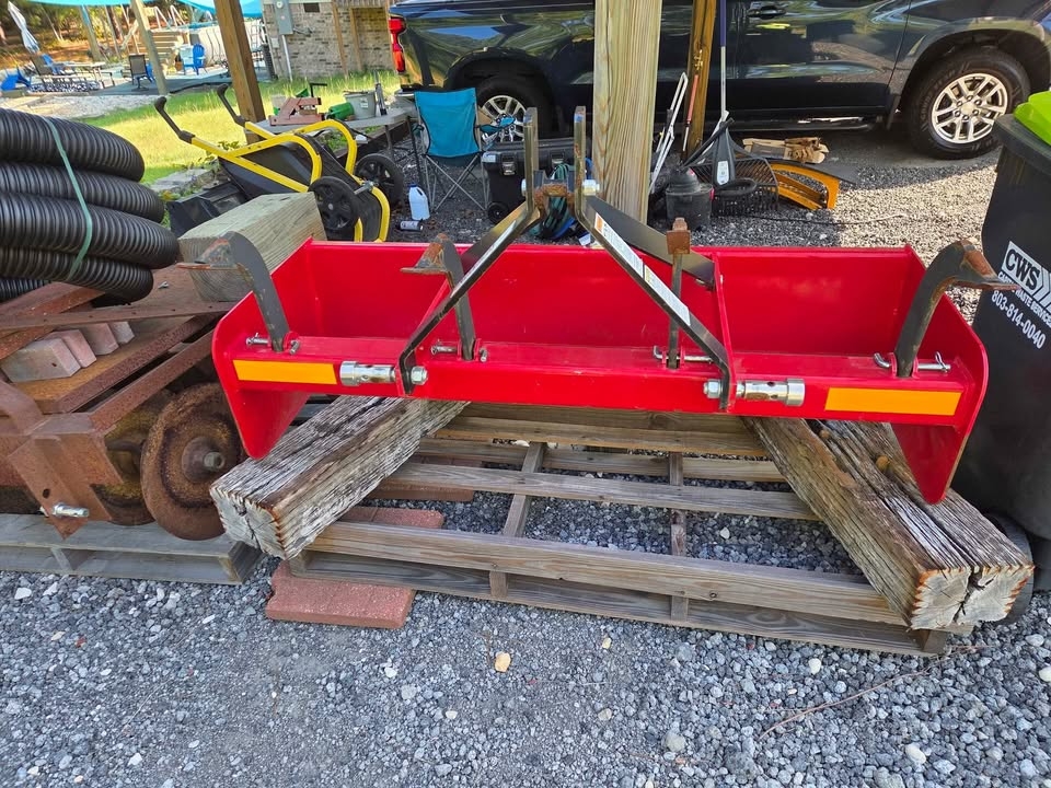 Tractor, front loader, and box blade can be moved on a 16ft trailer.