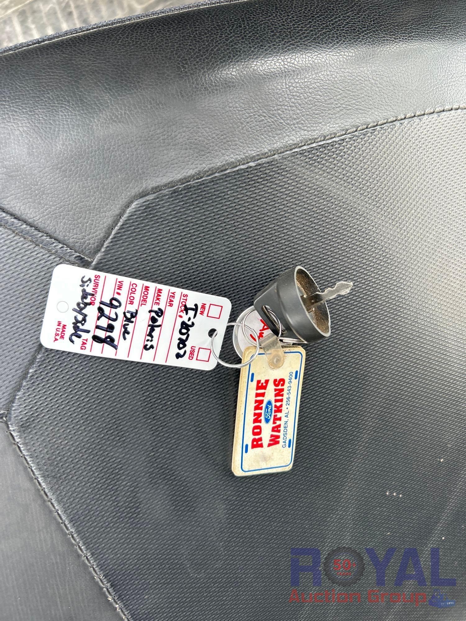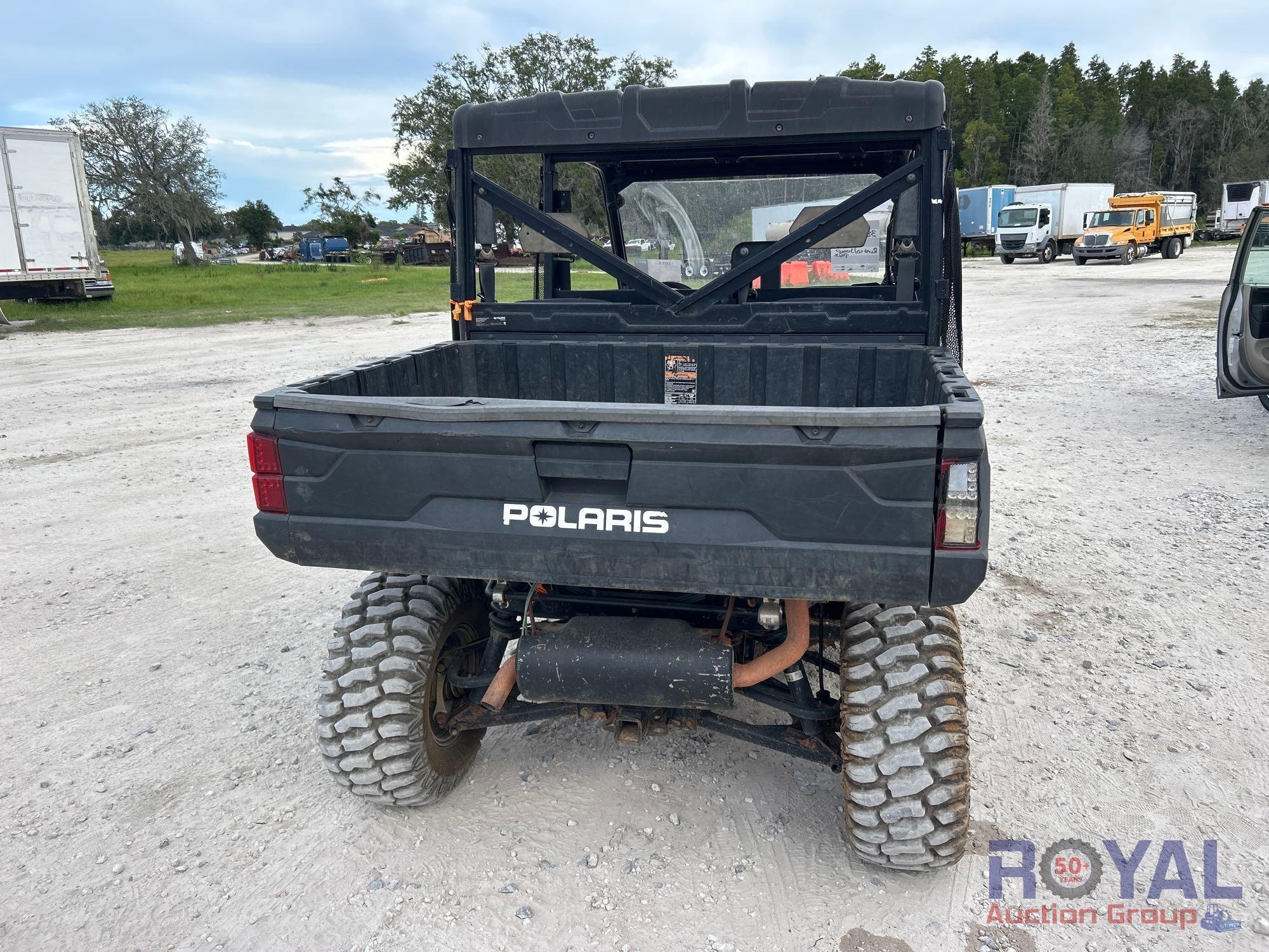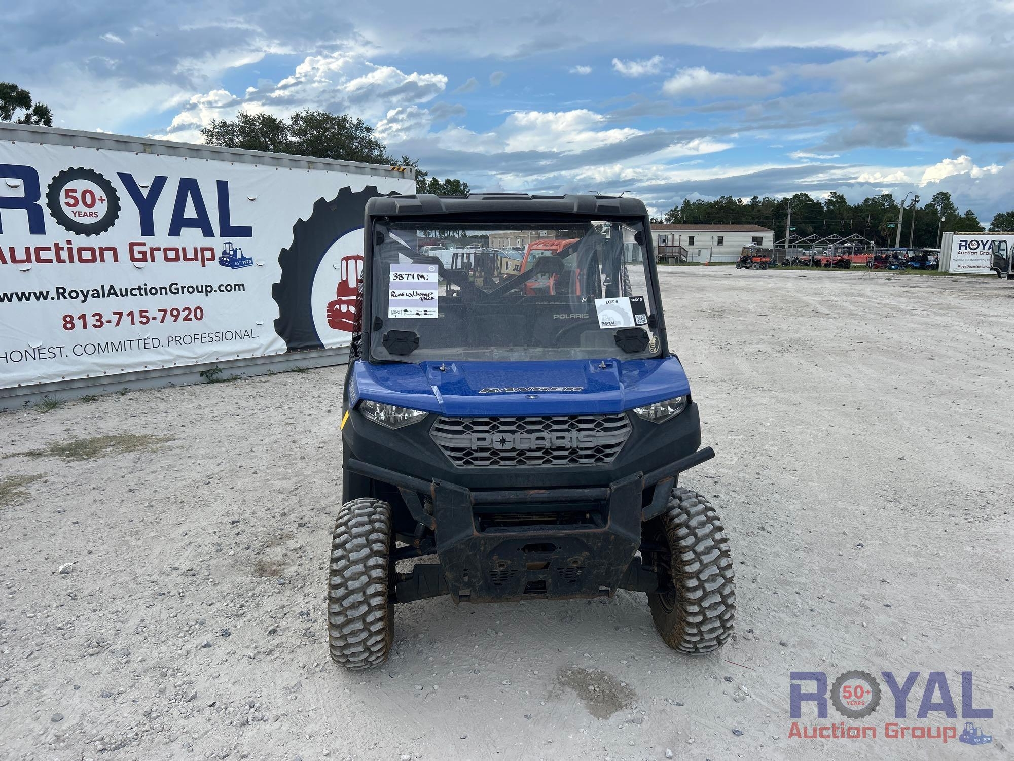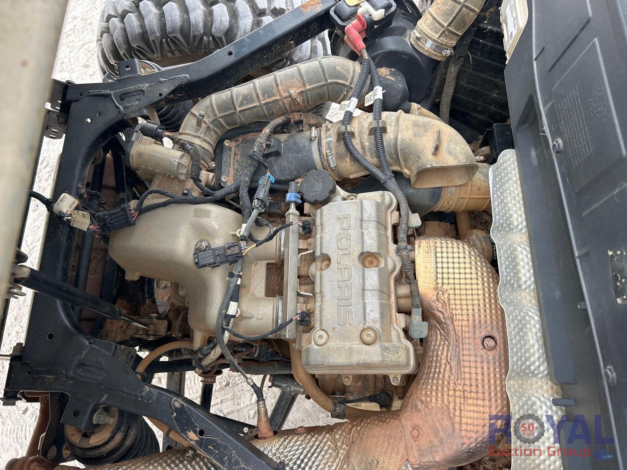 SN: 4XAT6E991N8012779, Odom Reads: 3,877 miles. Powered by a Polaris 1000cc Gasoline Engine, CVT Transmission. Equipped with four person seating, manual dump utility bed, two and four wheel drive mode selector, tow package, front bumper bar, full length canopy. Runs and drives with jum, Limited function check completed at check in.