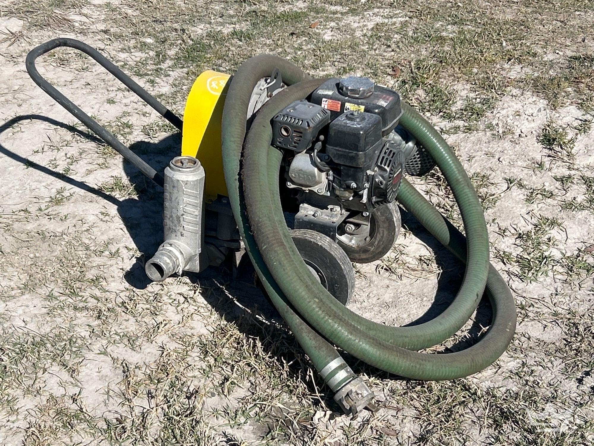 SN: 24568306. Powered by a Honda GX120 Gasoline Engine. 2in openings, up to 50gpm pump. Unknown running condition, pull cord handle missing noted.