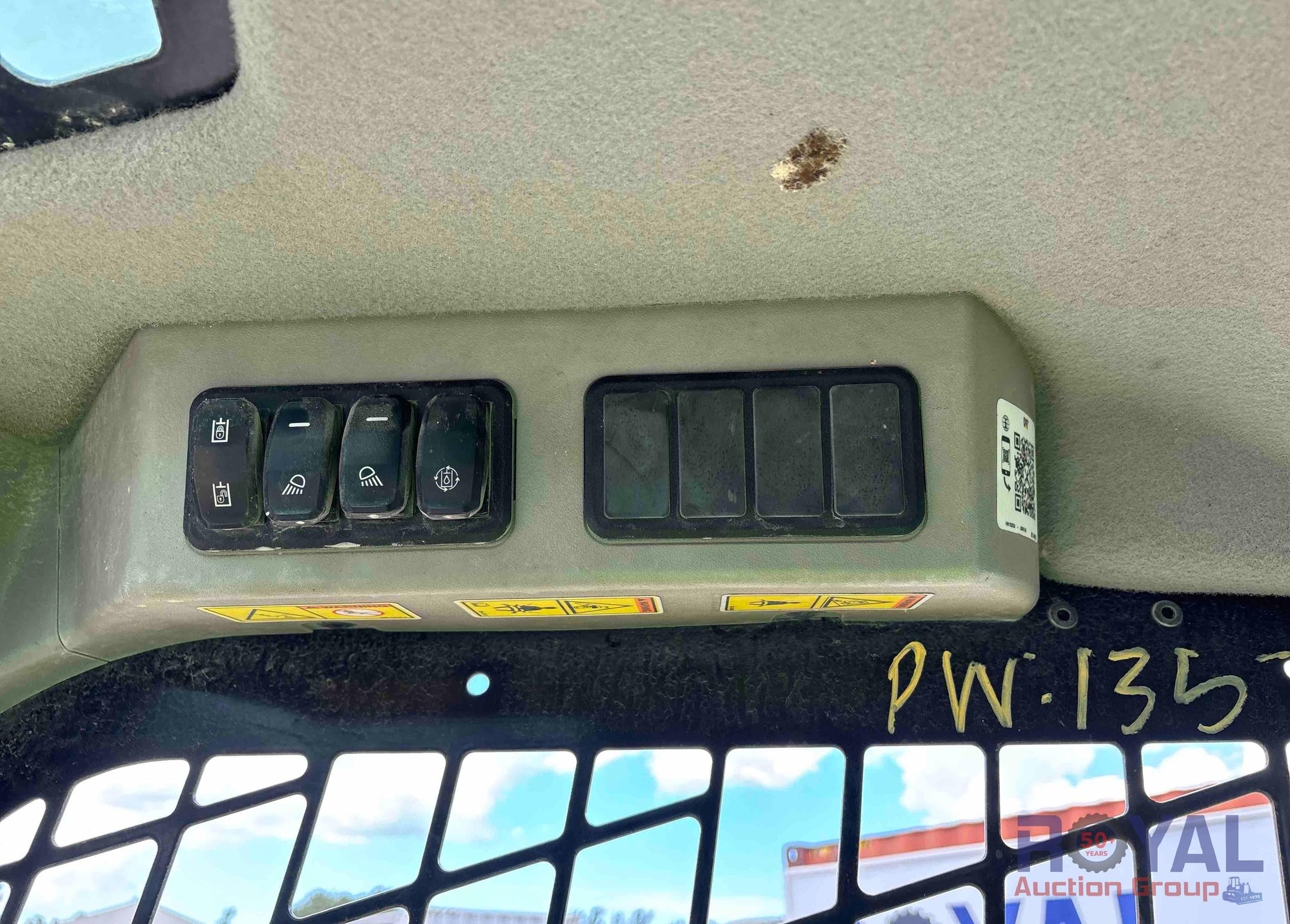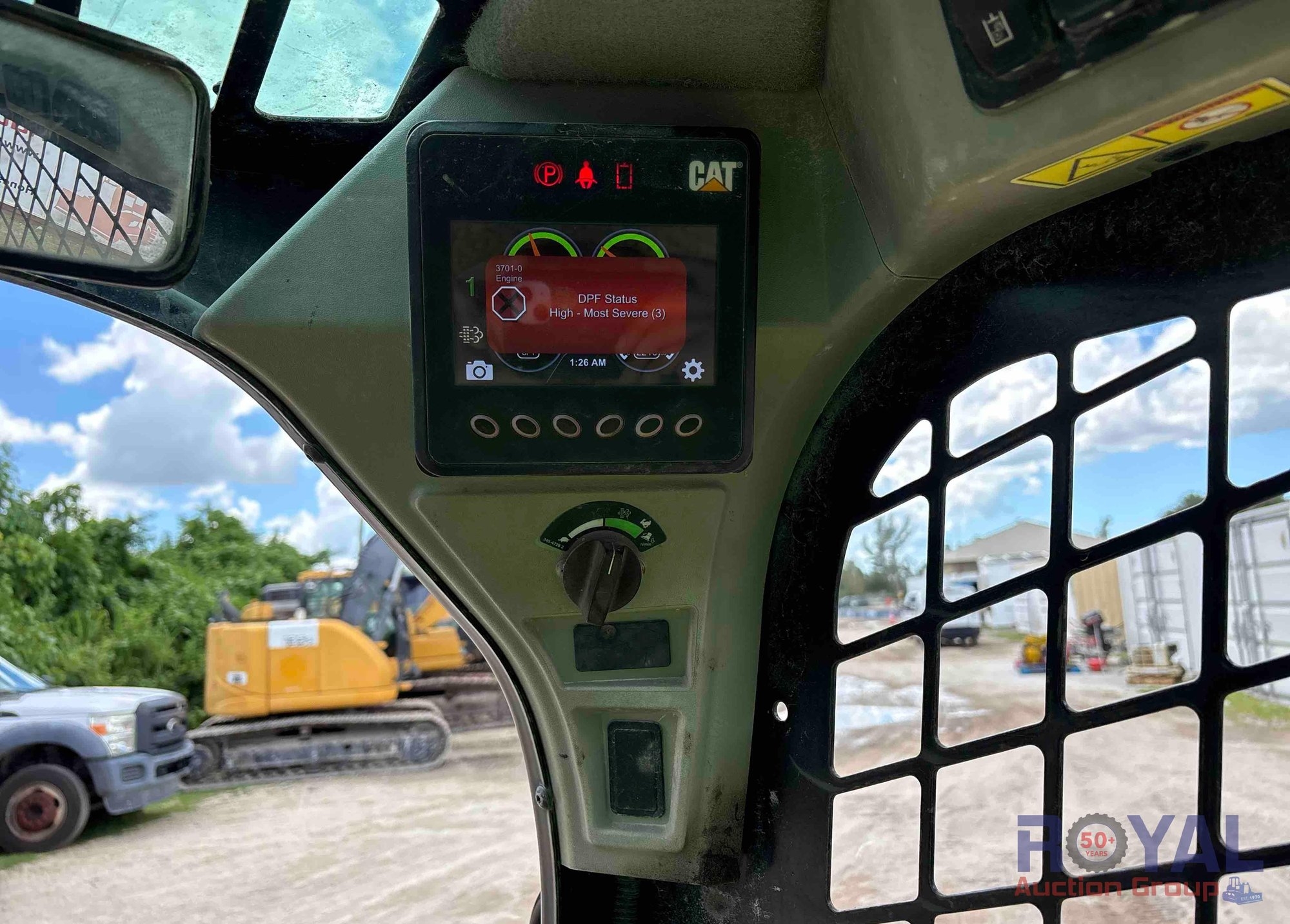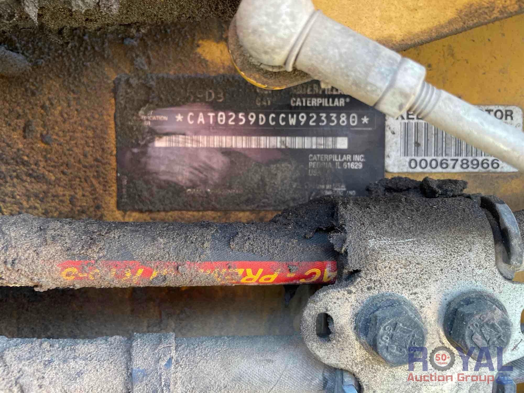 VIN: CAT0259DCCW923380, hour meter reads 1,991 hours, pwd by CAT C3.3 3-cylinder turbocharged diesel engine. Equipped with: hydrostatic drive, 74 in bucket with bolt-on cutting edge, 16 in rubber tracks, vertical lift, quick coupler, auxiliary hydraulics, advance display with rearview camera option, two speed, OROPS, joystick controls, work lights. Runs, drives, and operates. Limited function check completed at check in. LEFT TRACK BROKEN