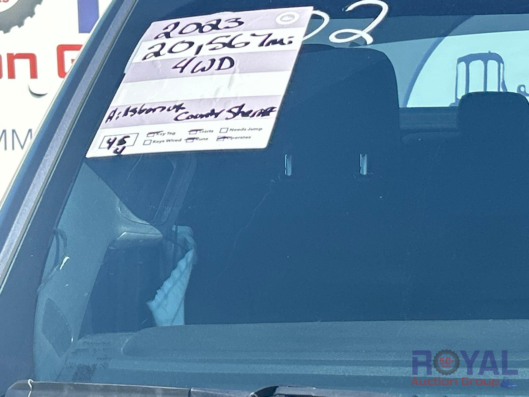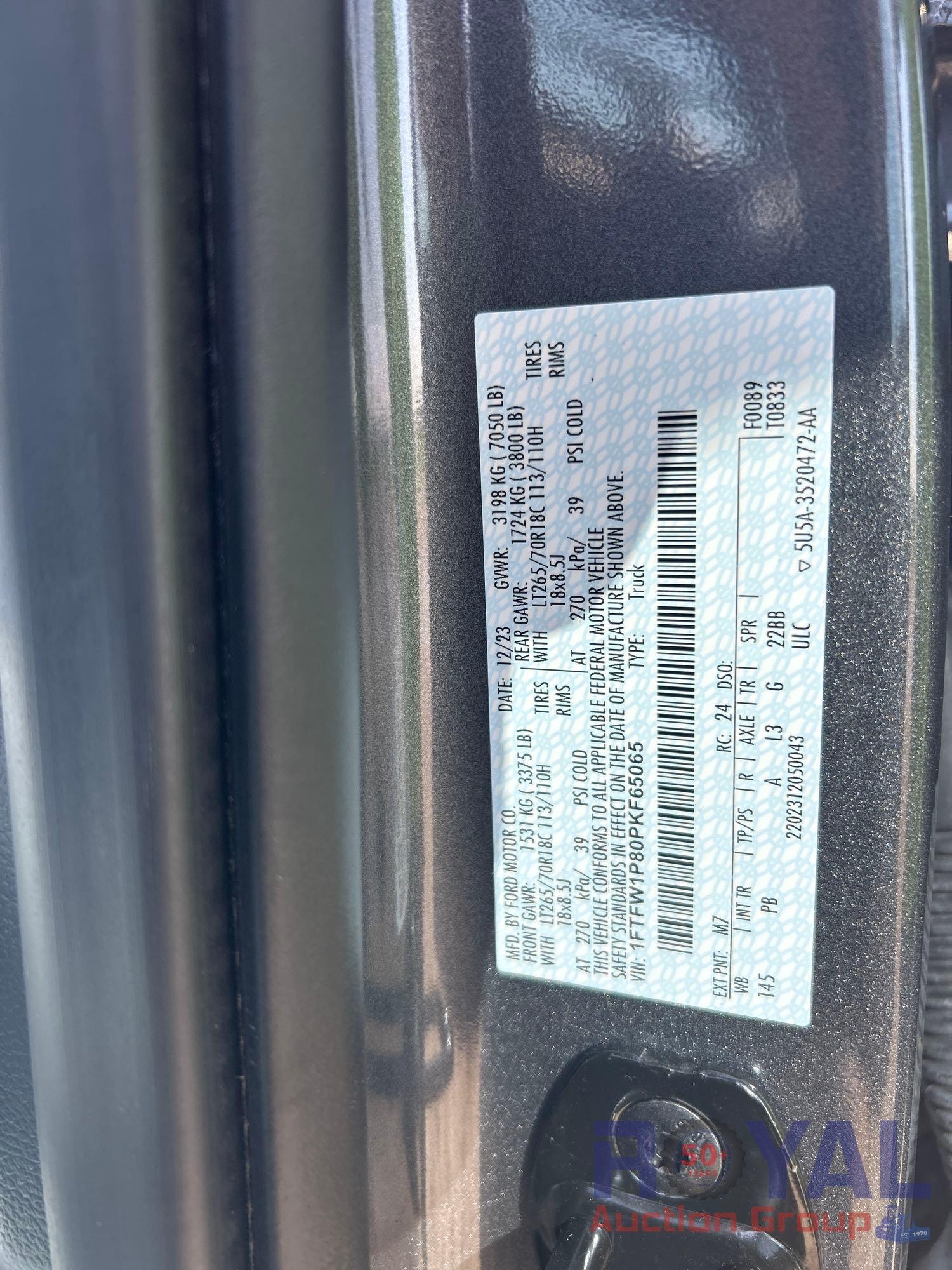 **SELLING OFFSITE AT ROYAL AUCTION GROUP ZEPHYRHILLS, FL LOCATION** Hillsborough County Sheriff (119002); VIN:1FTFW1P80PKF65065 Odom Reads 20,567 miles, pwd by 3.5L V6 turbo gas engine, automatic transmission. Equipped with: four wheel drive 4WD, tow package, bedliner, running boards, crew cab, pwr windows, seats, mirrors and locks, steering wheel cruise, hands free phone system, digital infotainment system w/ Apple and Android Auto CarPlay, bluetooth connectivity, and am/fm radio, AC/heat, backup camera assistance, full interior.. Runs and drives. Limited function check completed during check in. *Body damage noted at check in.*