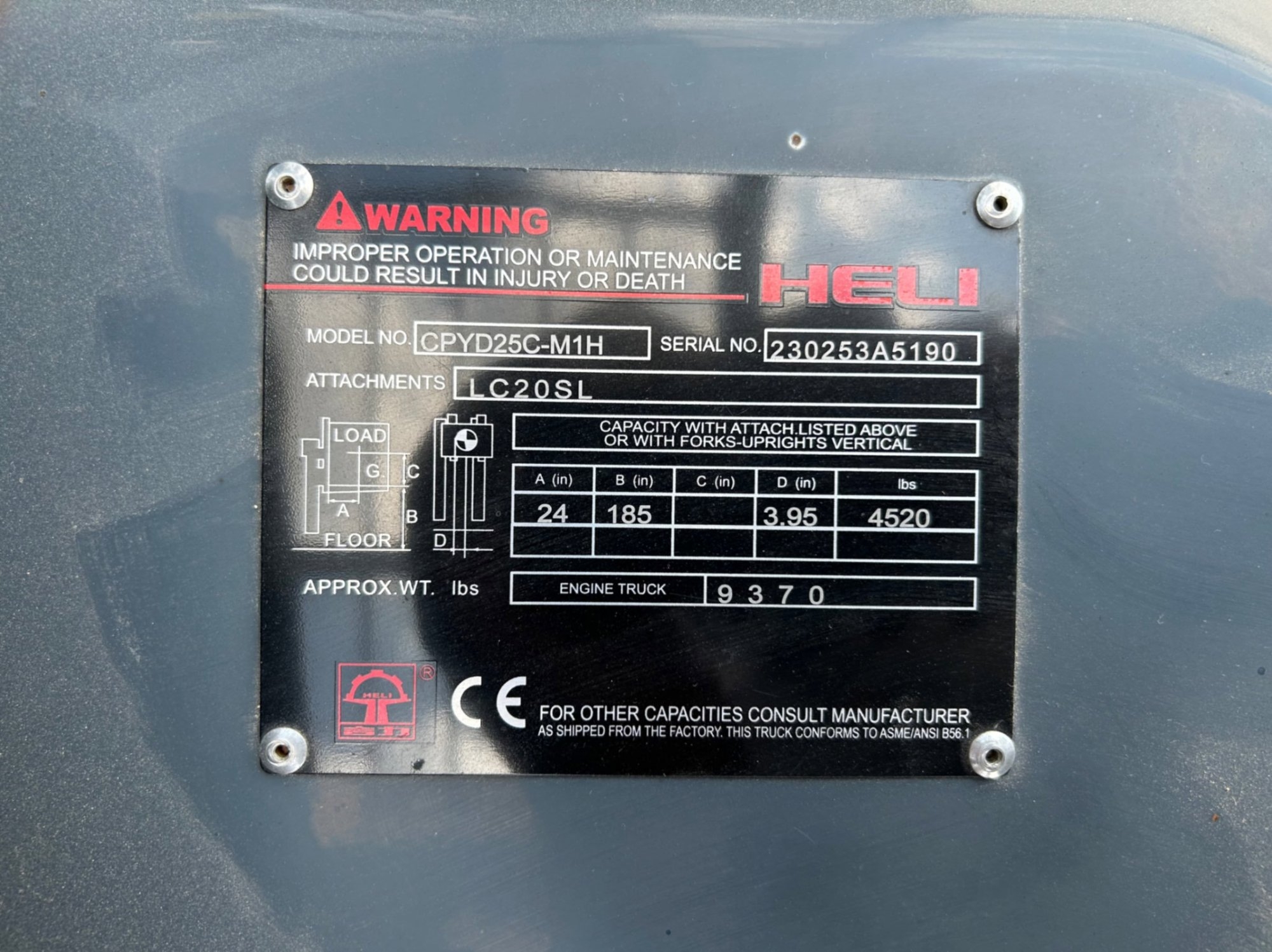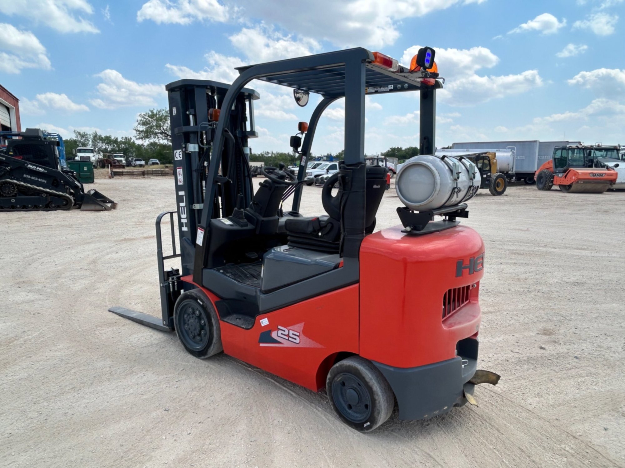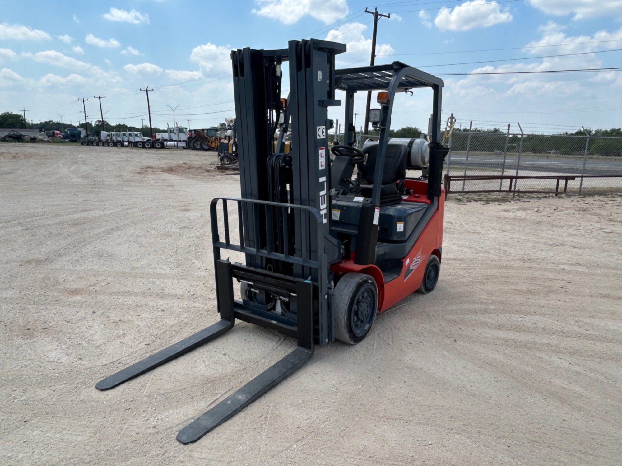 (Atascosa. TX) 2023 HELI CPYD25C FORKLIFT VIN/SN: 230253A5190, ENGINE: MITUBISHI, METER READS 2.2 HOURS, ENGINE STARTS: YES, 5,000 LB LPG STAGE 3 MAST AND 42 INCH FORKS WITH A LIFT HEIGHT OF 185 INCHES, FUEL TYPE: PROPANE, TIRE SIZE: 21X7X15 FRONTS, 16X6X10.5 REARS. ITEM# 16055