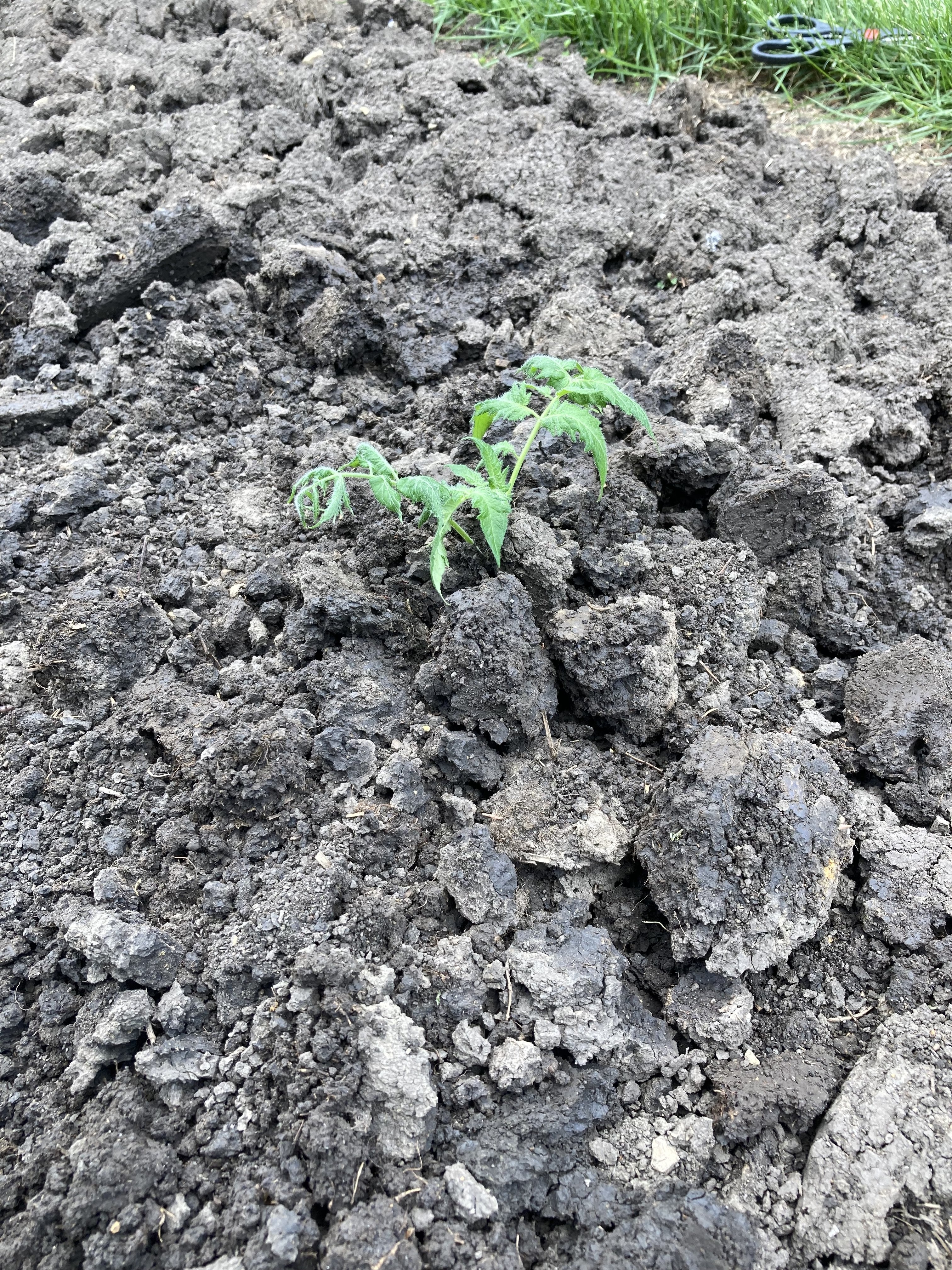 We started our plants from seed and are now ready to plant. Some got too big but that happens. I shovel flipped the garden last week and rain has softened it up a bit. It's still kind of chunky so that will let water down deep. See earlier posts. I almost never water plants.