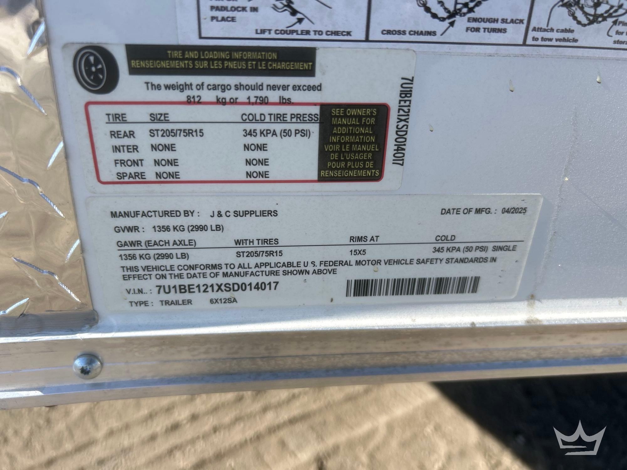 VIN: 7U1BE121XSD014017, **No title, MSO only**, GVWR 2,990 lbs, GAWR each axle 2,990 lbs, 12 ft enclosed cargo box, rear cable assisted ramp door, side door entry, 5 lug wheels, coupler tow hitch, jack stand.
