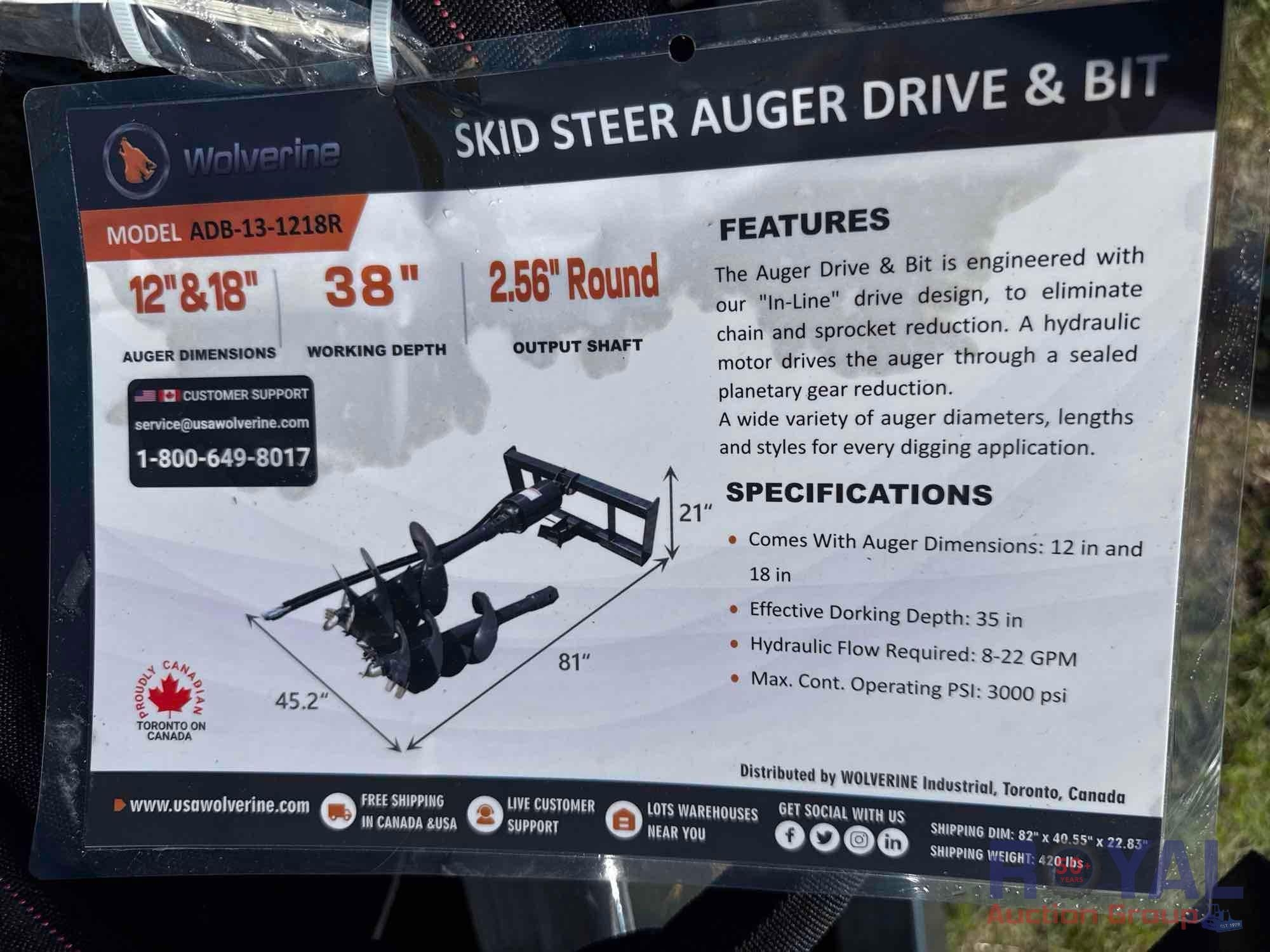 2025 Wolverine ADB-13-1218R Auger Skid Steer Attachment with Bits (A52378)