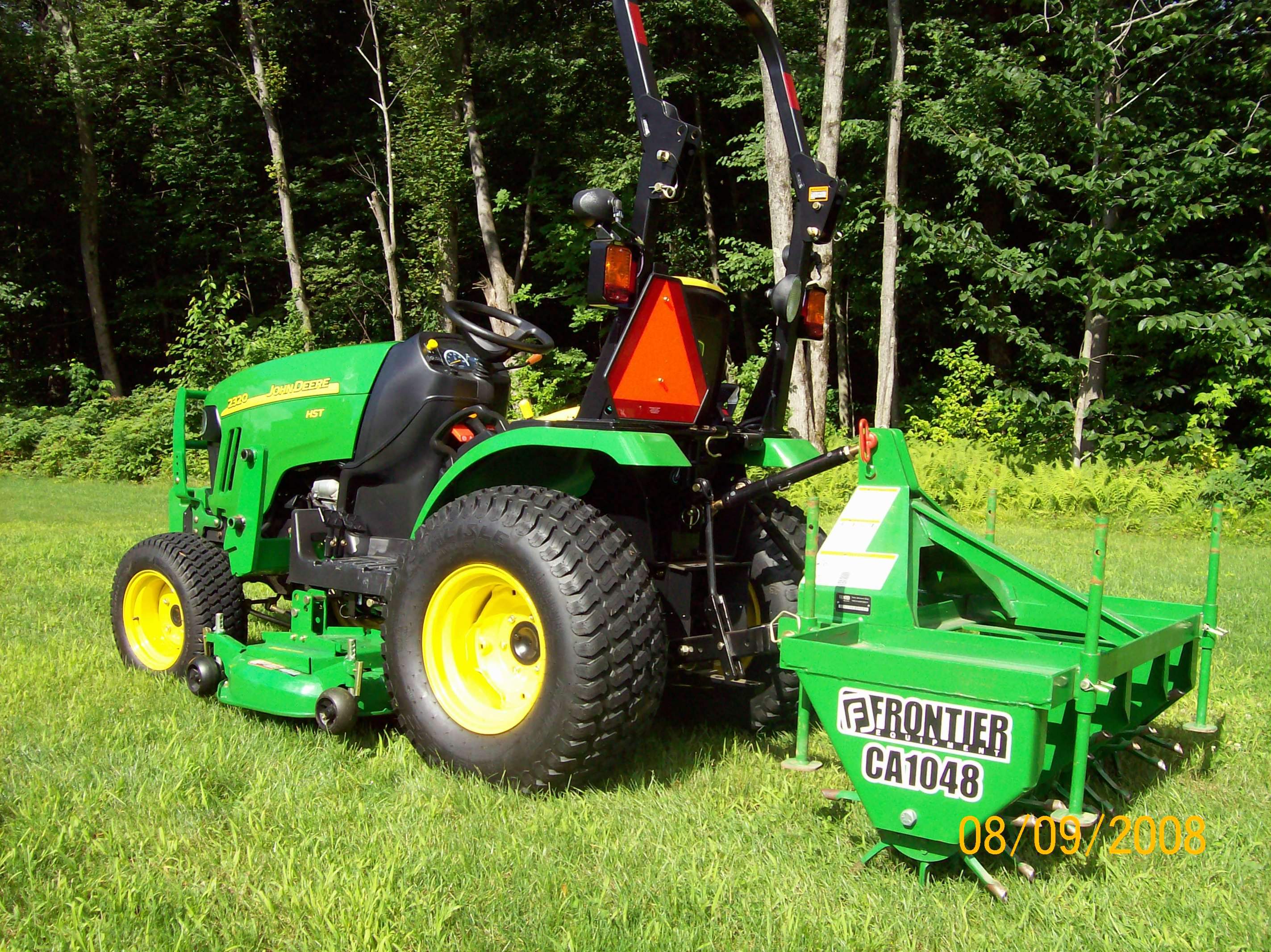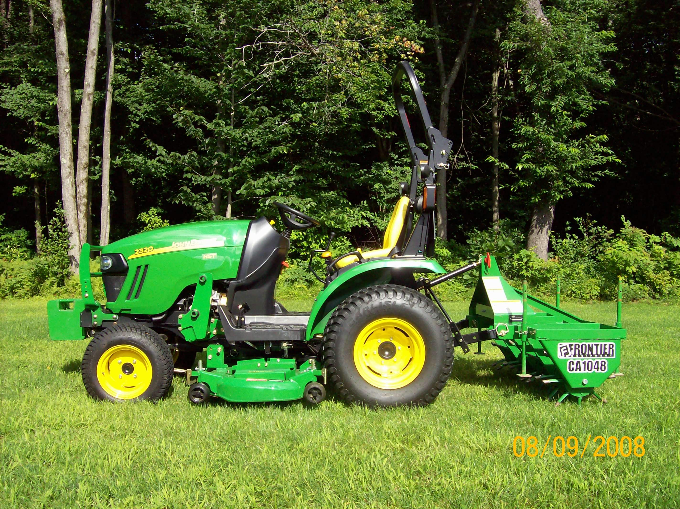 GM1072R) and 3 pt Frontier CA1048 core aerator and am doubting the 2320's ability to handle both. I have slight inclines over my 3 acres. Core aerators pull very hard even up slight inclines in heavy clay soil--My current JD LT190 really struggles up slight grades with my JD 40" pull behind aerator that doesn't have very many or very deep tines. Also, the JD website doesn't even suggest the 2320 for aerators. Wondering if a 2520 or even 2720 would be better--especially for the aerator, but hate to spend the extra $$? Also, for a tiller it would have to be wider than 52" to cover the tracks of the 2320 and again wonder on PTO hp in the clay soil.