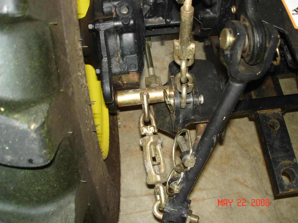 kennyd said:I don't use them to hold the deck up...but rather to set the lowest cutting height (3.5" for me) in case the stop on the rockshaft lever moves. I never have the deck on when doing any 3PH work so I don't need them to hold it up. I remove the deck and use cable/zip ties to hold the arms up.