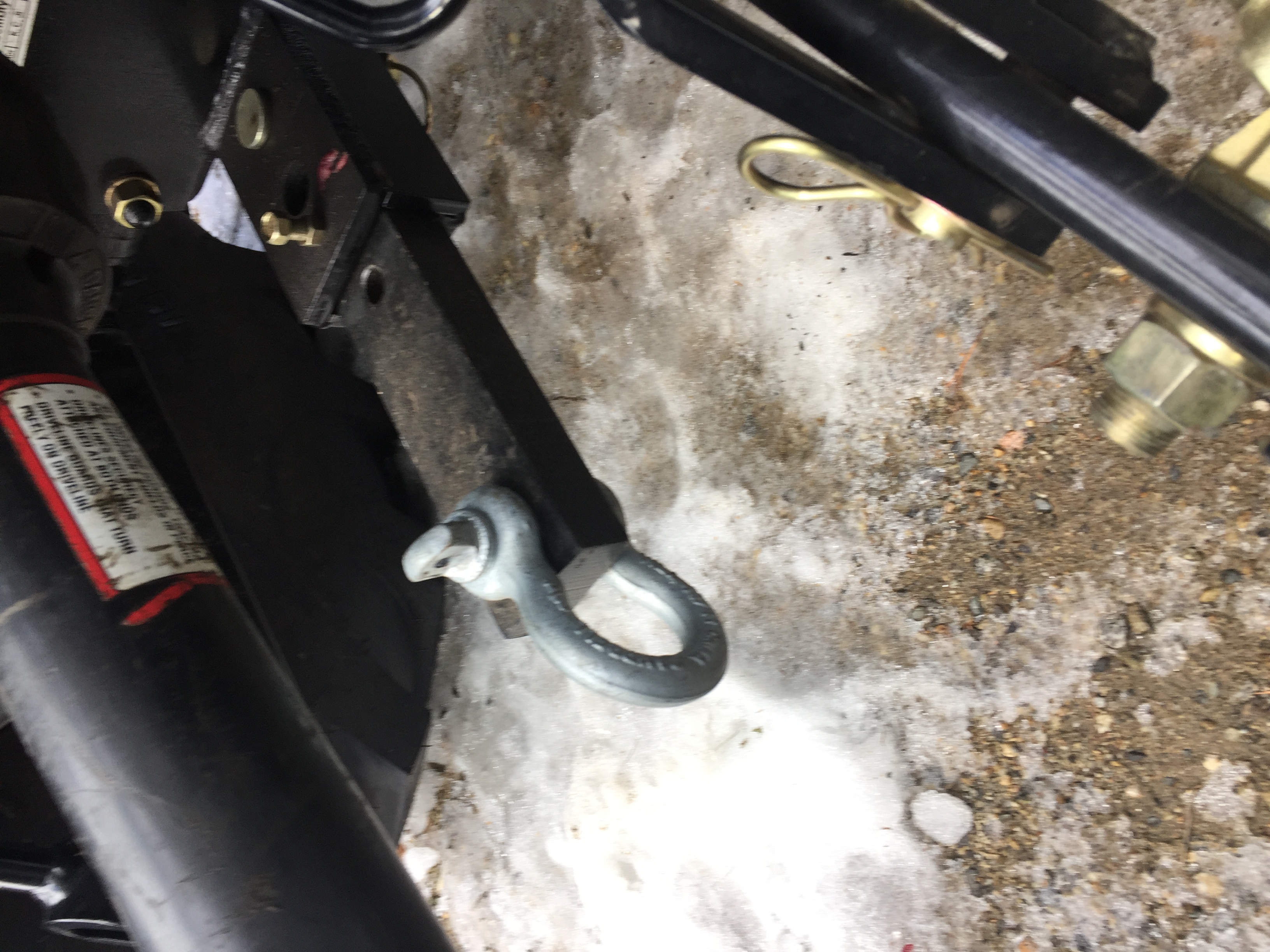 How far are you going? If were just running a few miles down the road we run a clevis through the rear hitch and a chain through it to the corners of the trailer and another through the FEL and cinch it down with a chain binder or come along.I was wondering what other have done to secure their tractors to a trailer for transport, the 2555 doesn't have a very good place to attach chains to.
