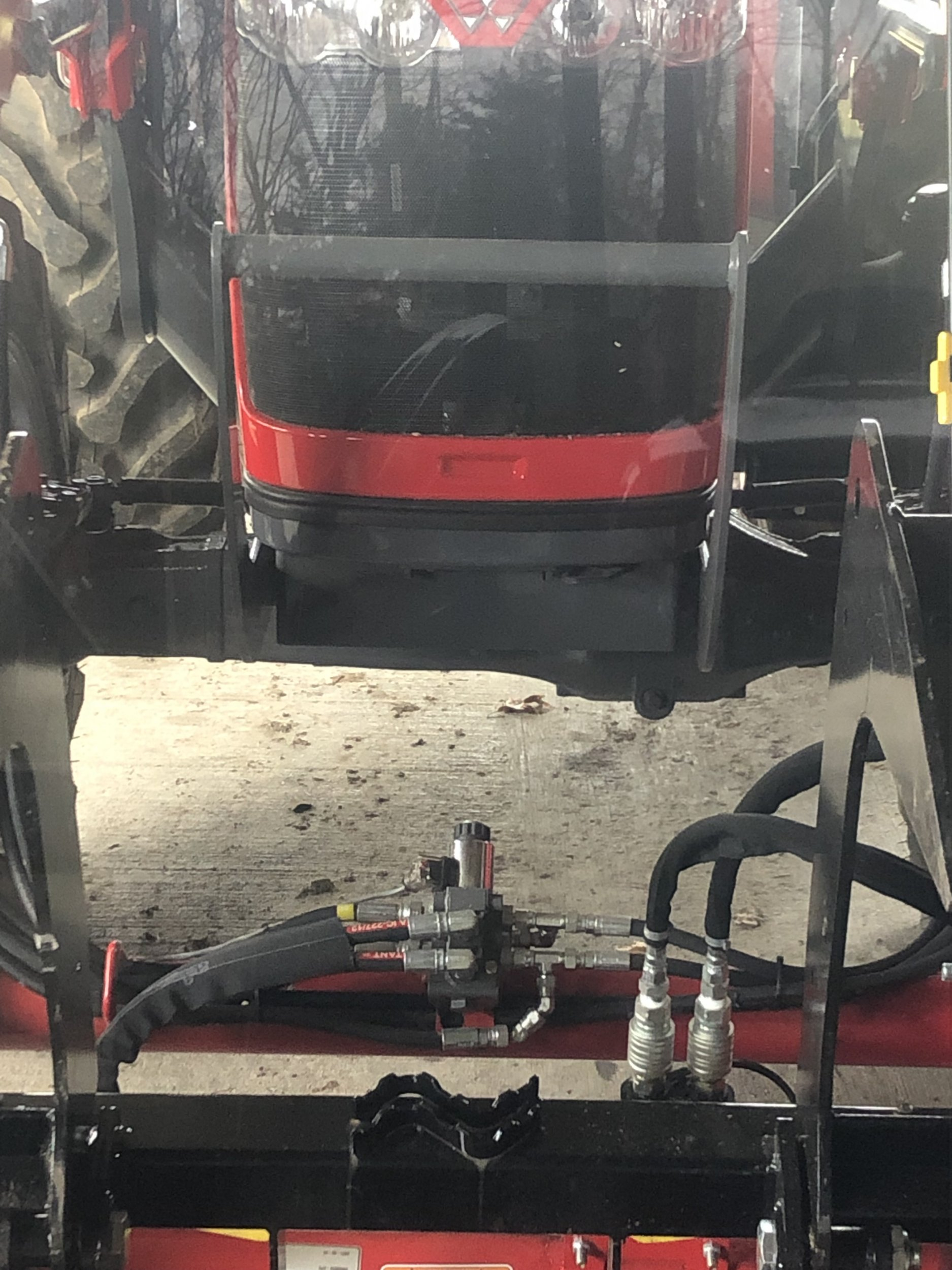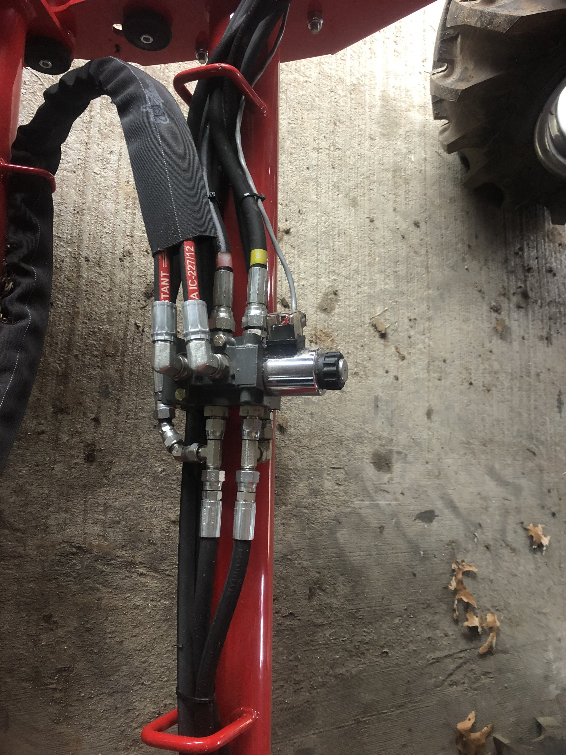 OMG ! The pictures sure do clarify. I initially agree with Harry in KY. I am astounded that it was installed that way ! I'd almost call it a nice looking job of a stupid installation. I can see that the 3rd function valve is an electrically controlled one so they could locate it darn near anywhere but ... Holy Cow! You might start by gingerly inquiring whether the dealer had advice to install the valve there by AGCO or where the idea came from.