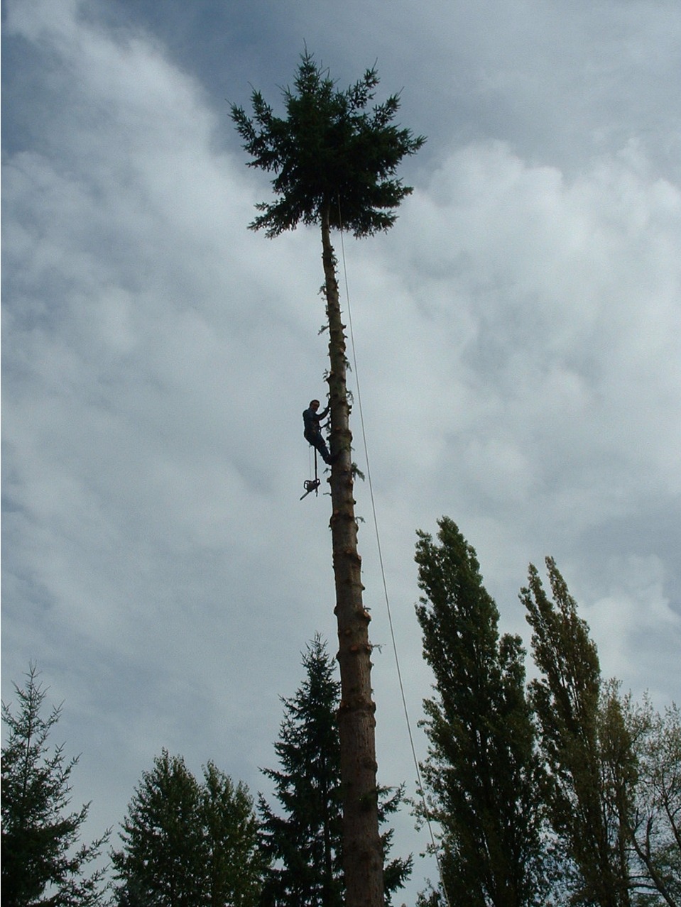 If you want to have some real scare factor come up and hang about 80' up in a tree pushing a big top over. That is when I have usually said a Prayer or two to the Lord to watch over me.