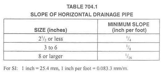 The same builder told me that the drop should be 1/4" every 10 feet where everything I have ever, ever read says 1/4" every foot. Perhaps with a drop of only that 1/4" every 10' you need the smaller pipe to keep things going. That minimal of a drop seems to me to be almost the same as flat!