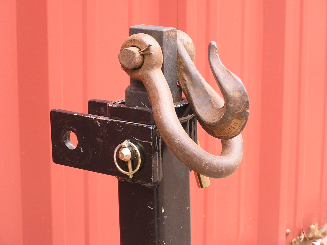 The clevis-stype hook-up is I think to make it quick-hitch compatible? I'm actually not a fan of that since I don't have a quick-hitch; I've found on heavier implements it makes attaching more difficult. But on this, not a big deal since there's no weight to it and the whole thing can just be picked up.