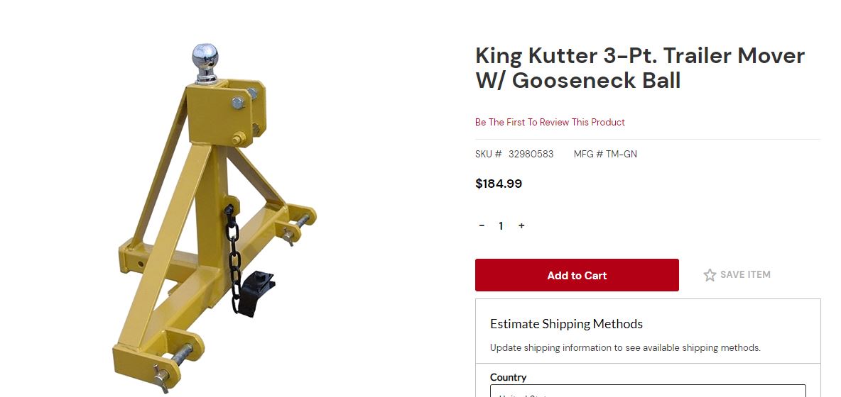I REALLY like my King Kutter trailer mover. I would challenge anyone to find one heavier built. They make 2 models; this is the heavier one. It has clevis style hook-up (stronger) for the lower arms and comes with a chain and adjustable connector to attach to your drawbar to prevent upward movement. It also has a spot for trailer breakaway chains to connect to. I have a ball mount with a hook welded on it that I use on this trailer mover and I have pulled trees and everything using it. Highly recommend.