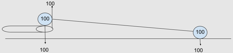 (Not pictured: ground pushing up 100# on the weights, this is called "the normal force"):