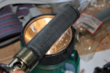 Even after cleaning in kerosene with a toothbrush, soaking overnight in diesel fuel and blowing with compressed air, the left strainer still looked pretty dirty, in that I couldn't really see through it when holding it up to a bright light. When clean, the strainers should be transparent enough to allow one to see a bright light through the mesh as well as the metal coil that runs through the strainer. Therefore, I replaced the left strainer with the new one.