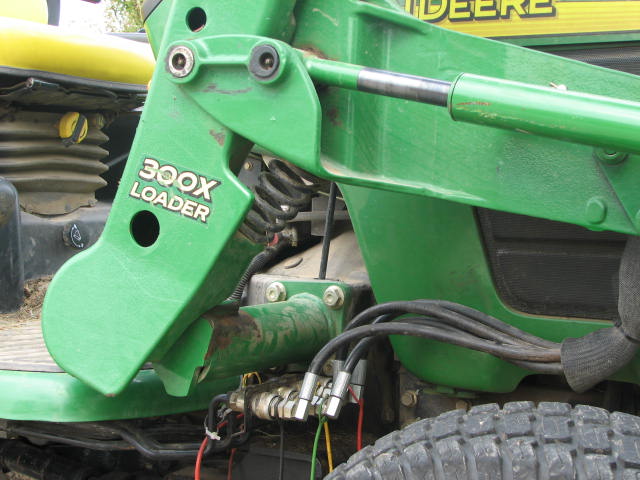 The attached pictures tell the story, but here are a few words. The left side of the loader is attached as it should be. The right side is cocked up and I can't get it down. The hydraulic cylinders aren't extended to the same degree on the left and right side. The loader isn't sitting on the tractor straight if you look at it from head on.