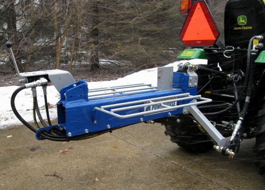 Now that fall is almost here and the weather is cooler (MN) I decided to put together my Northern Hydraulic 3PH log splitter. It was on sale, with coupons, $509 (13 Ton version).... how could one go wrong? I am one of those one less engine to maintain person and I wasn't looking forward to hand splitting as I have been doing. Ordered 1/4" x 12 ft hoses from Surplus Center ($18), 2 ISO 7241 B female fittings ($8.32) from Discount Hyraulics and a couple of 1/2" to 1/4" adapters. I elected to connect hoses to FEL hydraulic block and just bungee it open. Assembly was not an issue, they have good directions. I did have to grind a little metal out of the valve support plate as it wouldn't allow full valve travel when assembled. I did have to add about a gallon of SUDT as it sucked down the level real quick. The 12 ft hoses are just the right length. Cycle time on the splitter is just right for me. Bi-directional splitting is definitely the way to go. Built a little dolly to hold the splitter from by scrap wood collection. No crushing of hoses or hitting the cylinder fitting with the cart. All in all I am impressed with its abilities.