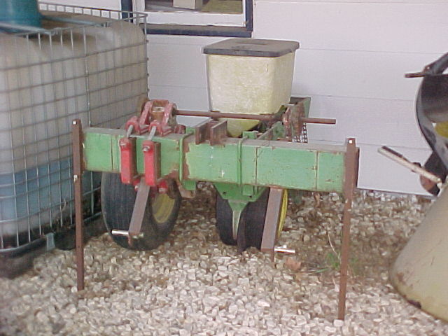 EDIT: According to my JD 71 Flexi-Planter Operator's Manual (Dealer Service Shop Copy, #OM-A41062 Issue C0) there are multiple attachments including: "Insecticide and/or Herbicide Attachment"; "Fertilizer Hopper"; and "Fertilizer Drive Wheel". The fertilizer box requires a seperate drive wheel that fits between the rows, the fertilizer hopper fits in front of the seed hoppers. The herbicide and insecticide hoppers can be used independantly or together and mount behind the seed hopper. Now the reason I think I have not seen any of these hoppers on the cut down units is because the fertilizer hopper is HUGE, and probably has more capacity than someone who uses a cut down 2 row planter would use. But that is just my guess.