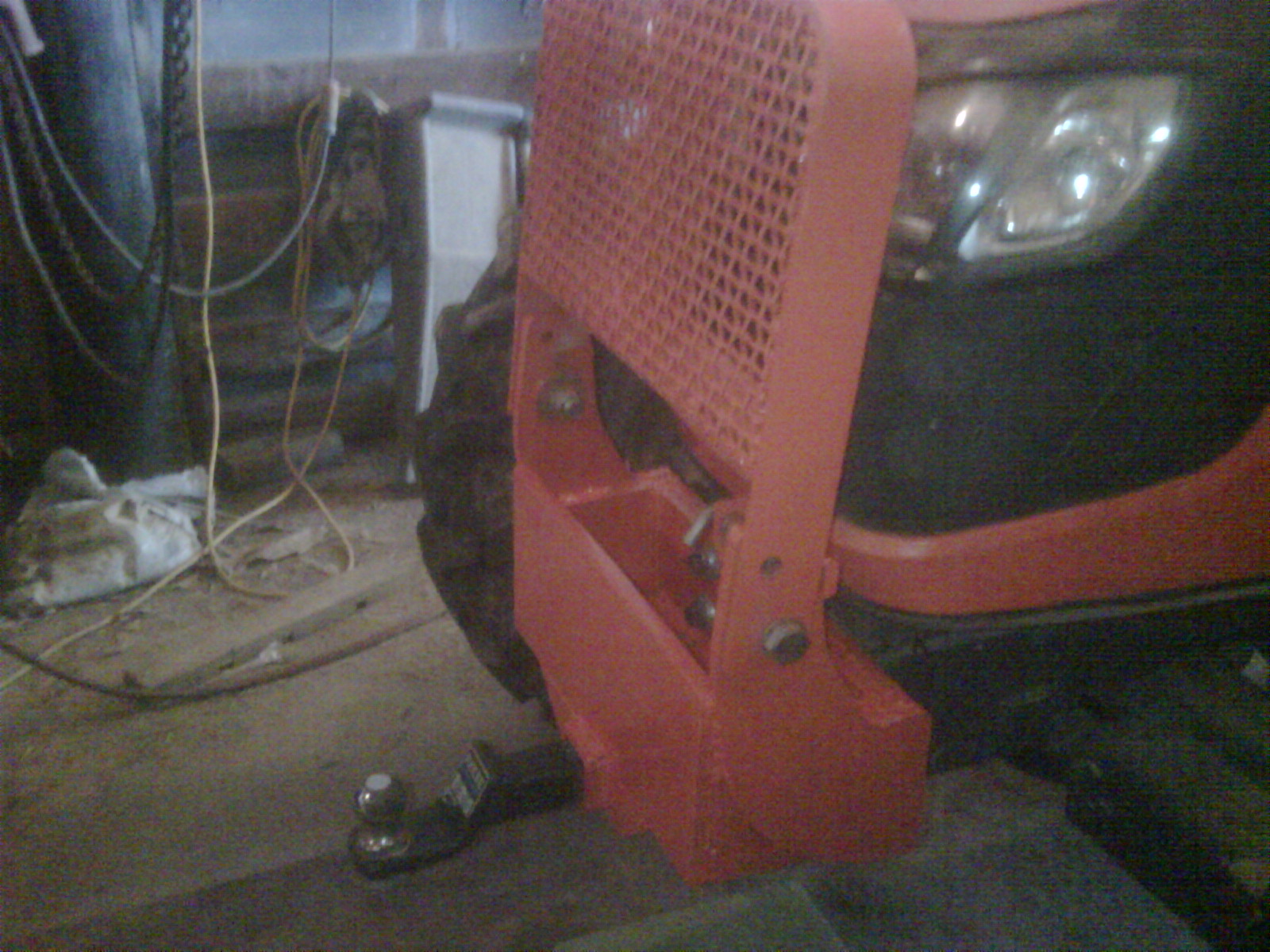 I am not finished with it, mostly because of 11 month twin girls in the house now and my job. When I am outside playing I normally have farm stuff to tend to so the tractor doesn't get sit in the shop much, but here is my brush guard mod. It has chain box and receiver hitch. Grill Guard Painted2.jpgGrill Guard Painted3.jpg