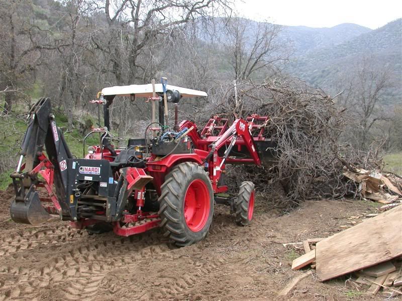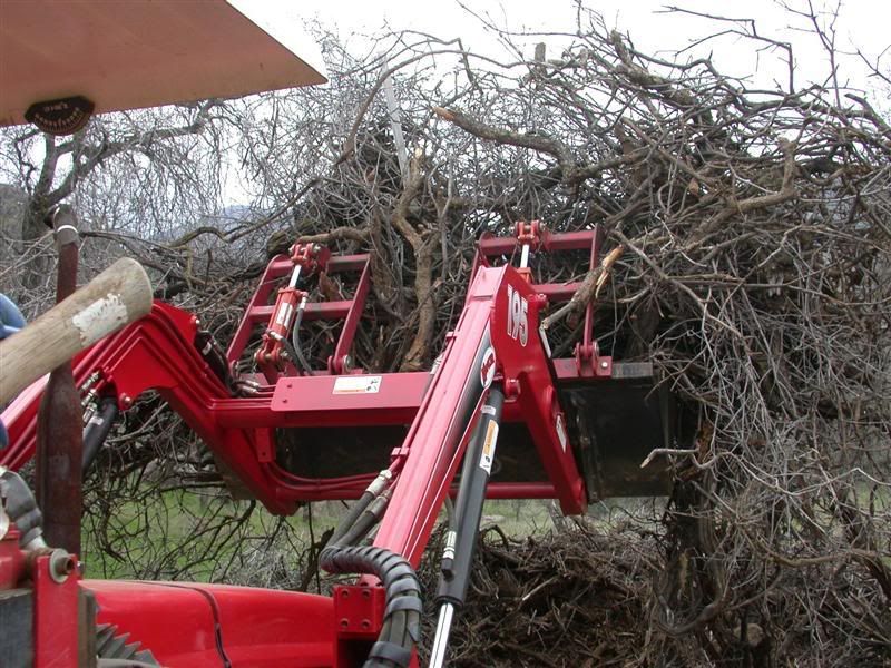 First was to take all of that gnarly brush and trees over to the same burn spot. Here are some photos of the Kama with dual bucket grapples doing some serious bush moving. It is not a true grapple set up, but just the same, we are very happy with the way it picks stuff up. I think a bucket grapple is a great all around combination for grapple and bucket work.