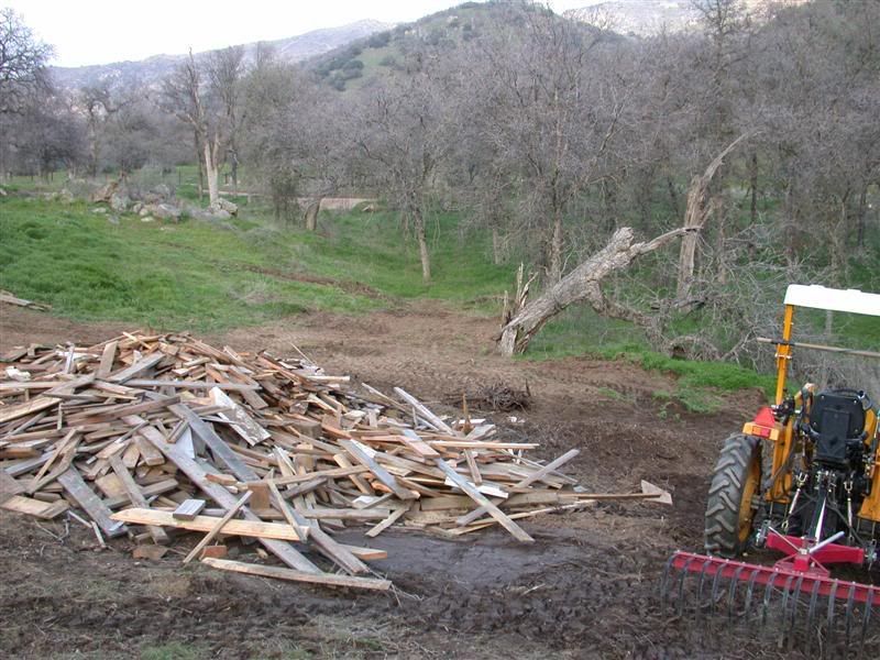 Since it had been warm the last couple days, the brush was dried out and burned right away. We kept adding to the pile when it dwindled down enough so as not to scorch the tractors. We constantly cleared around the burn pile throwing sticks in, but it was so hot you could barely get with 6 feet of it. The last photo was taken this morning, but when it started raining, you could see the steam coming off the pile.
