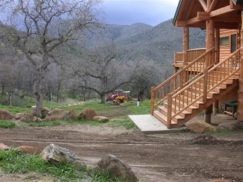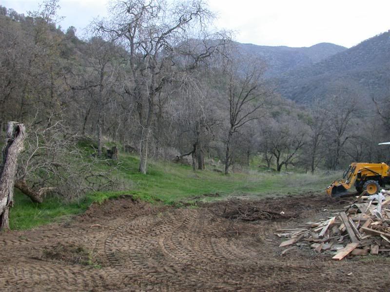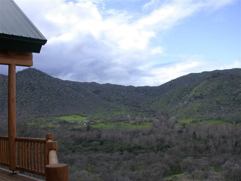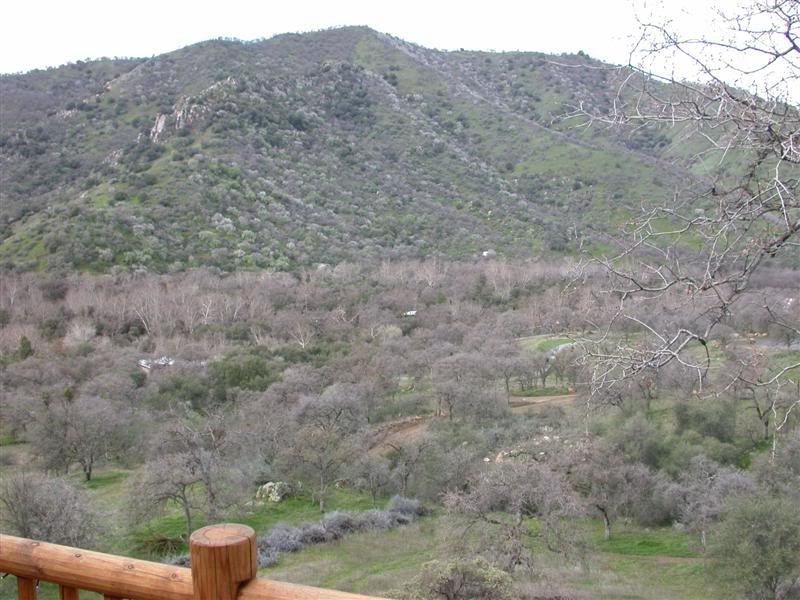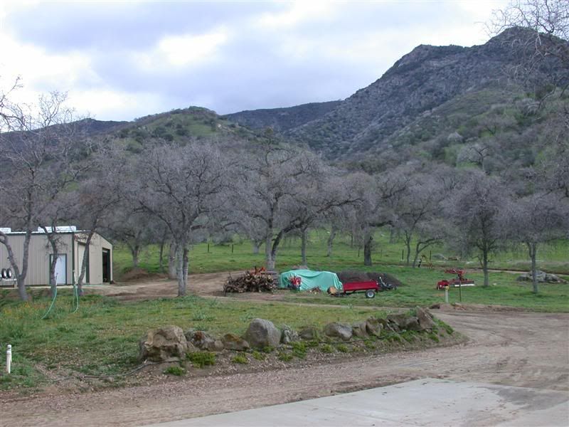 The first two pictures are of our front yard. You can see the barn in the background and where we keep the woodpile in the circle. We keep our tractor implements there too. The second pictures shows the area we have been working on, where the brush piles were. The last two photos are views of the back yard. You can see the cattle ranch across the valley. The last picture shows where our nearest neighbors are. You can't see their place when trees are full with leaves. Pretty much everything is getting green again. The Oaks will have new foliage in the late Spring when the grass will start to turn brown again.