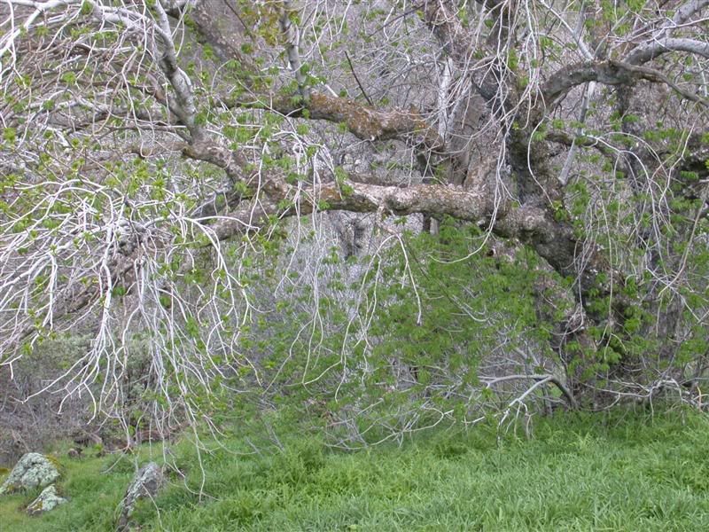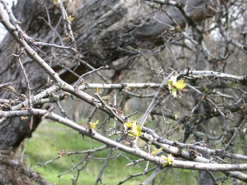 Check out this one and see where those sprouts are coming from. It's a very old Oak that has once been burned through, but every year it manages to sprout new branches and leaves. Too bad I'm going to cut it down though. It's trunk is so shattered it could fall on the kids at any time.