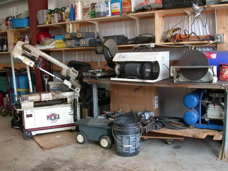 This week since I wasn't working on my tractor or Loretta's, I got a little more organized in the Barn/Shop. I was able to get the one side of the shop pretty much how I wanted. I have work benches lined up with my saw and grinders and welders and also a bunch of hand tools on the shelves. I ran power strips so they are available right away for this and that. I know it still looks like a mess, but at least I know where everything is, and it is all handy to get at while working in that area.