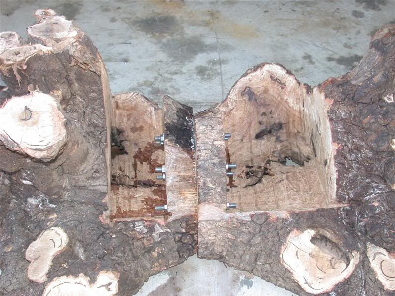 I then glued and bolted the halves together. When it was dry, I continued to work on the roots which are the legs to get them fairly level and all touching.
