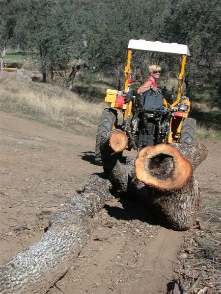 While I was sawing, Loretta chained them up and dragged them with her Jinma.