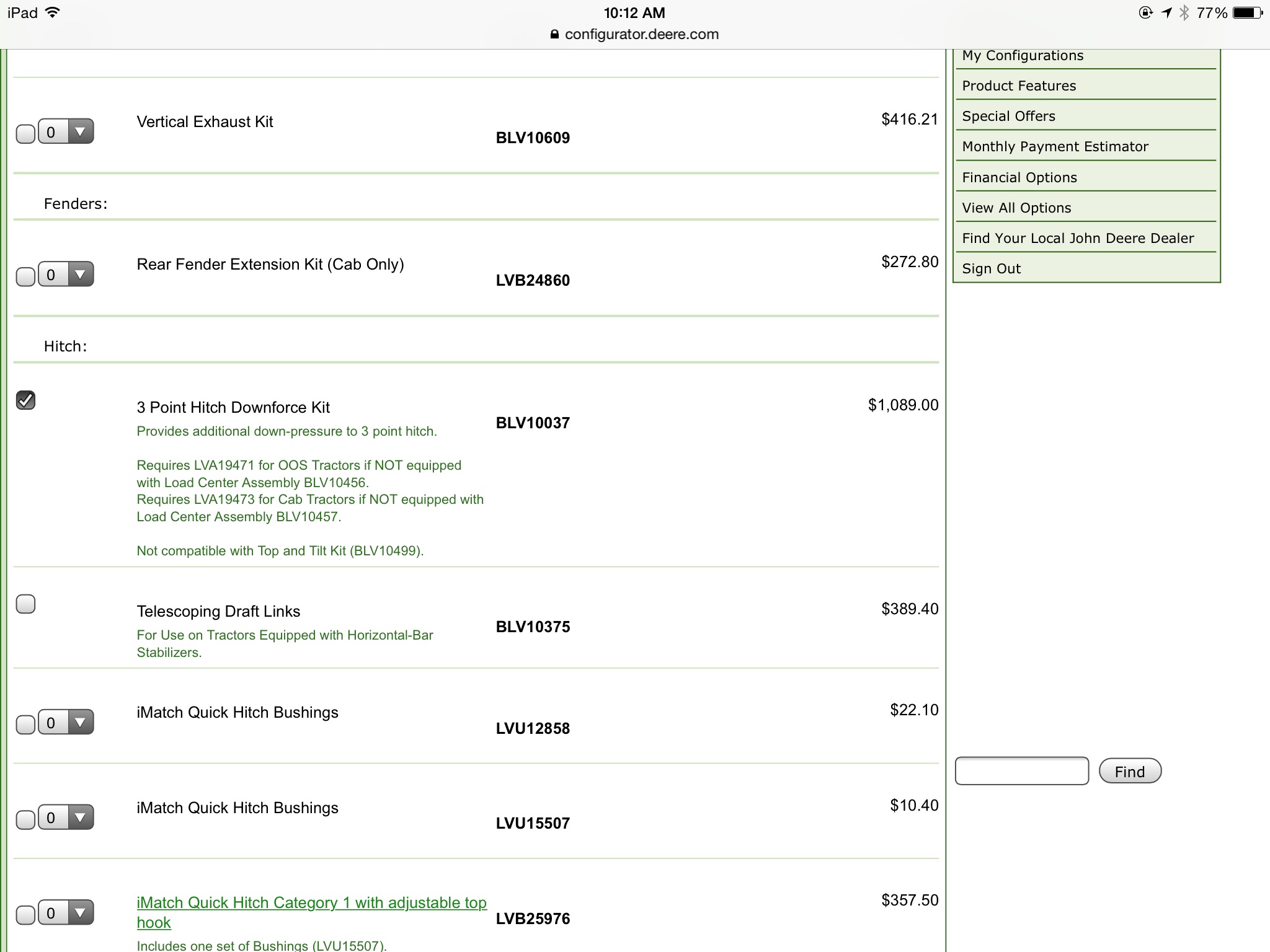 I think their down force kit is independent of the top and tilt. It bolts to a frame that is biked to the lower side by the draft links and the upper 3 point arms. Yes a switch like on off. I guess not enough hydraulic power to run everything??