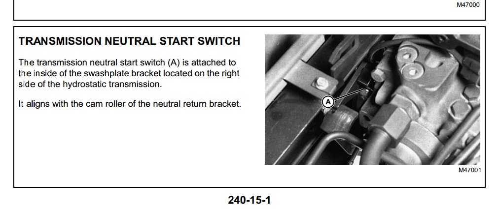 I removed the starter and had it checked at local starter/alternator repair shop and it checked out fine.. I checked battery at local auto parts store and it checked out fine also.... I really think its the safety interlock issue, but not sure how to bypass or check the neutral or operator present safety switches??? My gut is it's the neutral bypass as I was not using the PTO prior to tractor not starting.... Anyone walk me through checking the neutral safety interlock on 955?