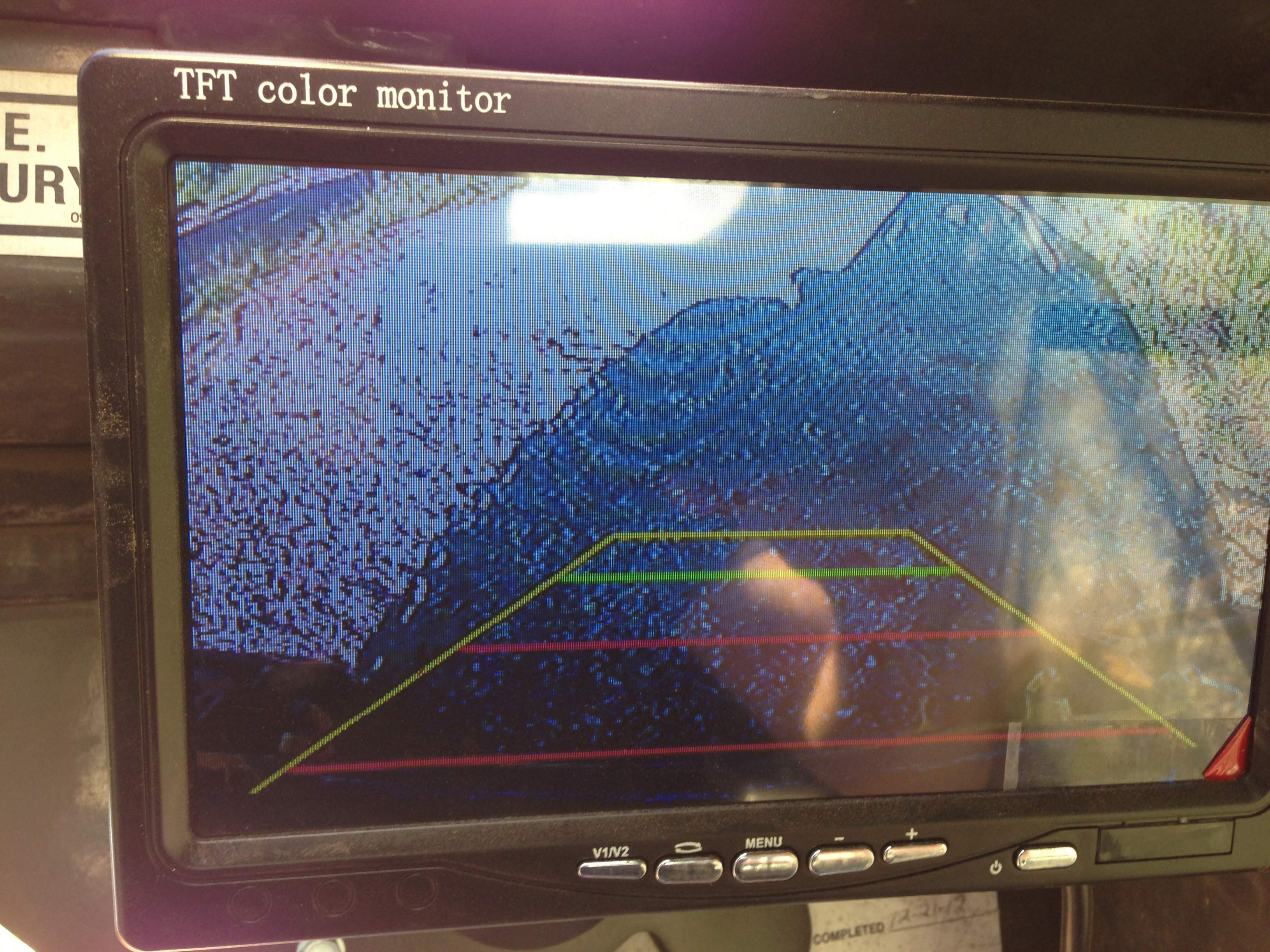 Cord, I installed the same make monitor last week, and presumably the same camera if yours is the one Roger originally linked to in this thread. My image is much sharper than than the ones in your pics, and the colors are quite good after adjusting contrast and brightness. So I'd say something is defective in your case, most likely that monitor. Since it's only $28 (or whatever they are this week), I'd probably just order another one to compare. If it's o.k., keep it and send the first back. If not, send 'em both back at once.