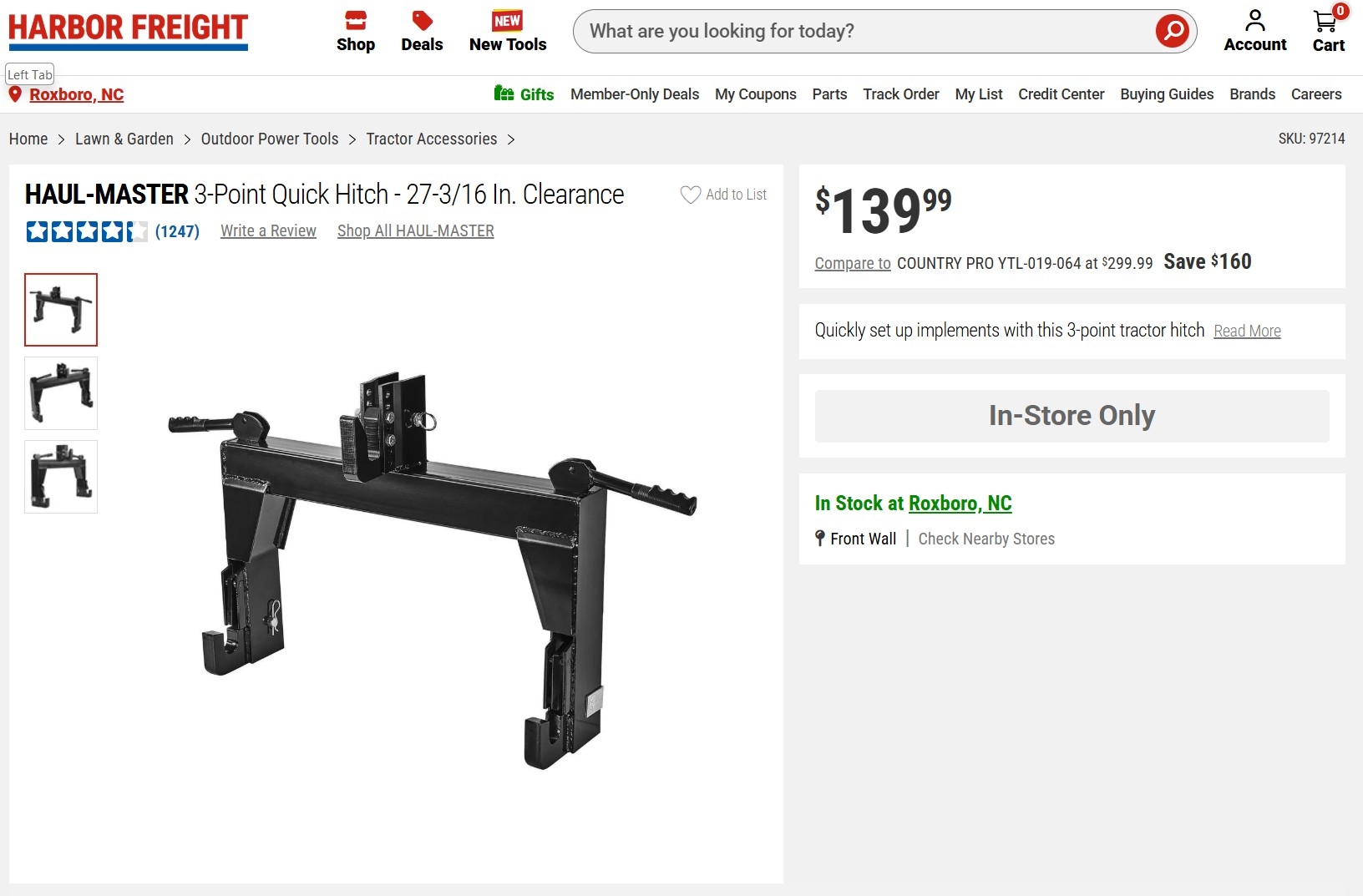 Now, I placed my QH adapter on each of the implements. I back up and the top QH hook grabs a hold of it perfectly. No getting off the tractor. These are sold all over Amazon for cheap. You need to know what length you really need. Then these adapters are perfect to make your implements QH usable.