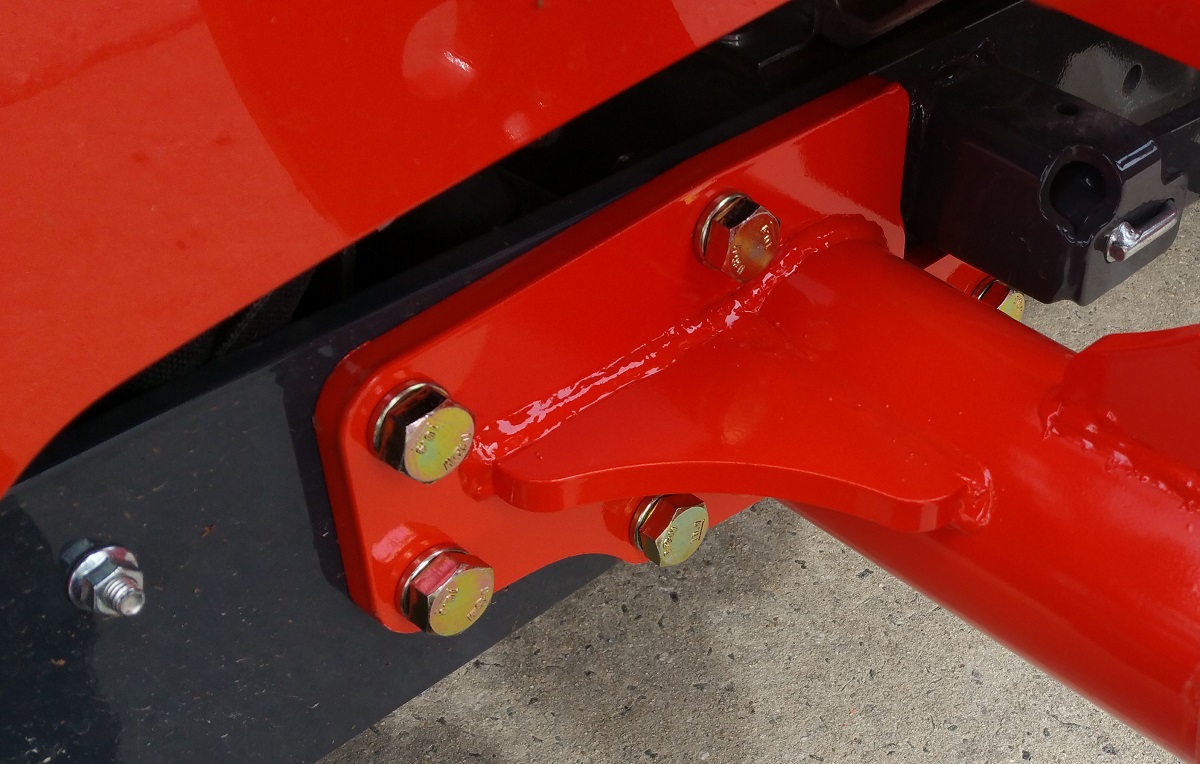 Bolted the included loader mounts to the frame, which are attached by 5 bolts on each side of the tractor.