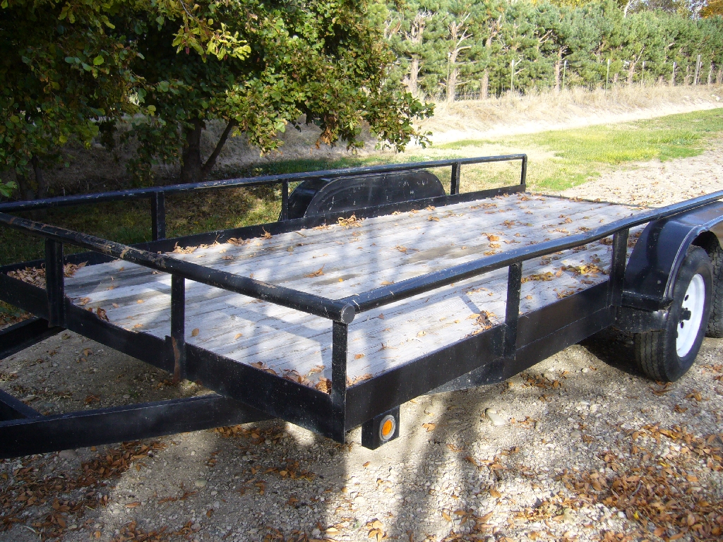 I picked up this trailer last year in a trade. Not exactly what I wanted, I don't like the side rails, but oh well it does have ramps. You can tell by the damage on the rails that at least one of the PO's also wished it had D rings