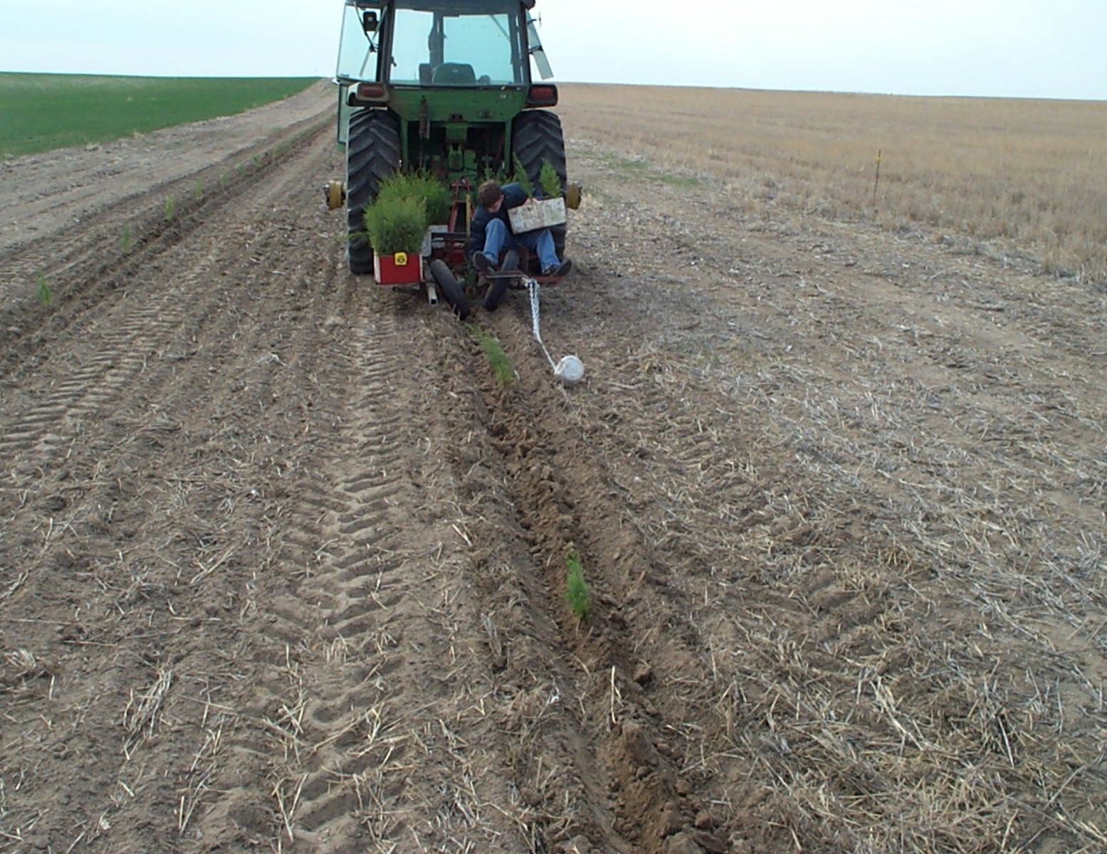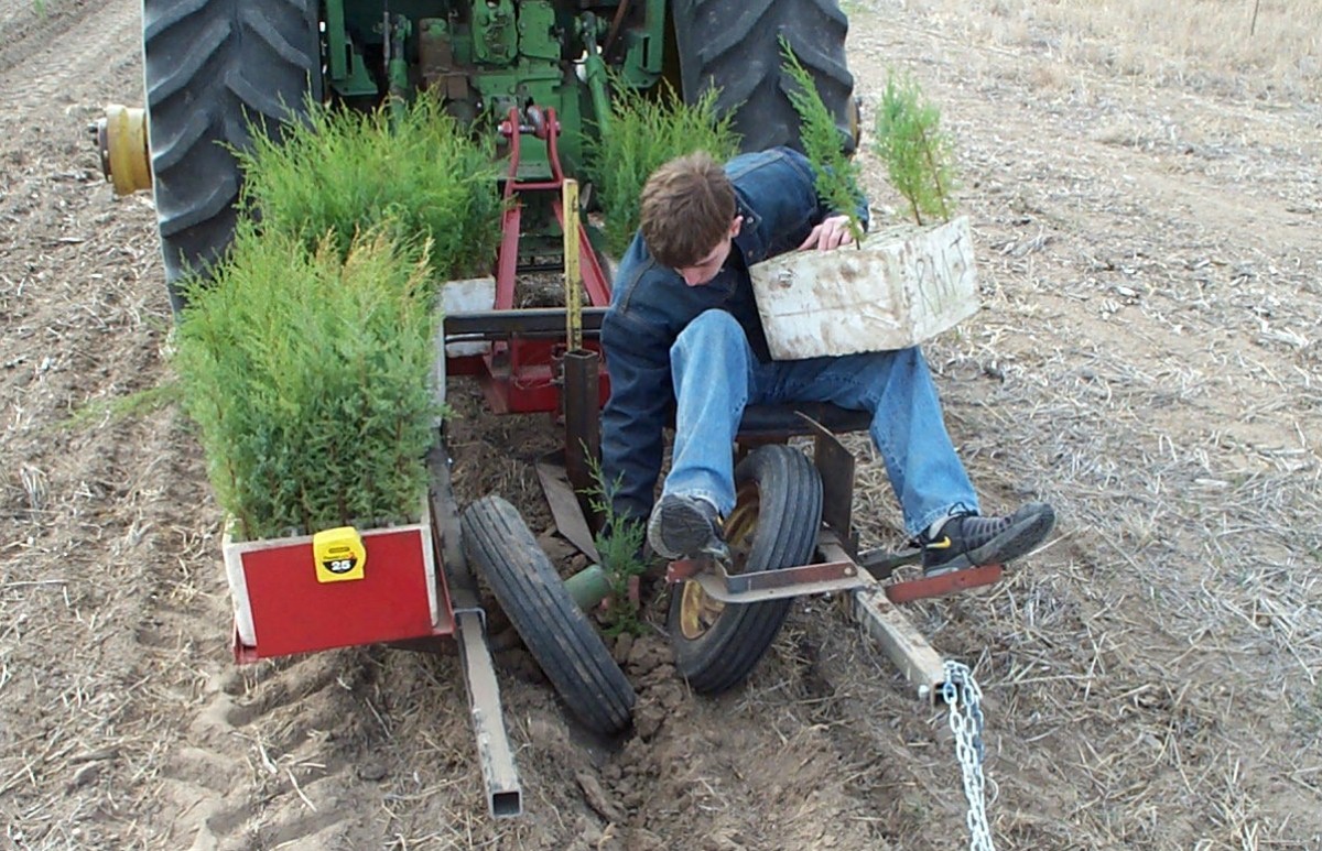 We are just finishing up 1700 trees of various types on one farm and will put about 1000 on another beginning tomorrow. My brother is doing the planting with a dibble bar we made from patterns on various sites. Years ago when we reforested larger sections, we hired a crew. When we called this time they wanted the ground preppred and marked then they would charge 80 cents a tree.
