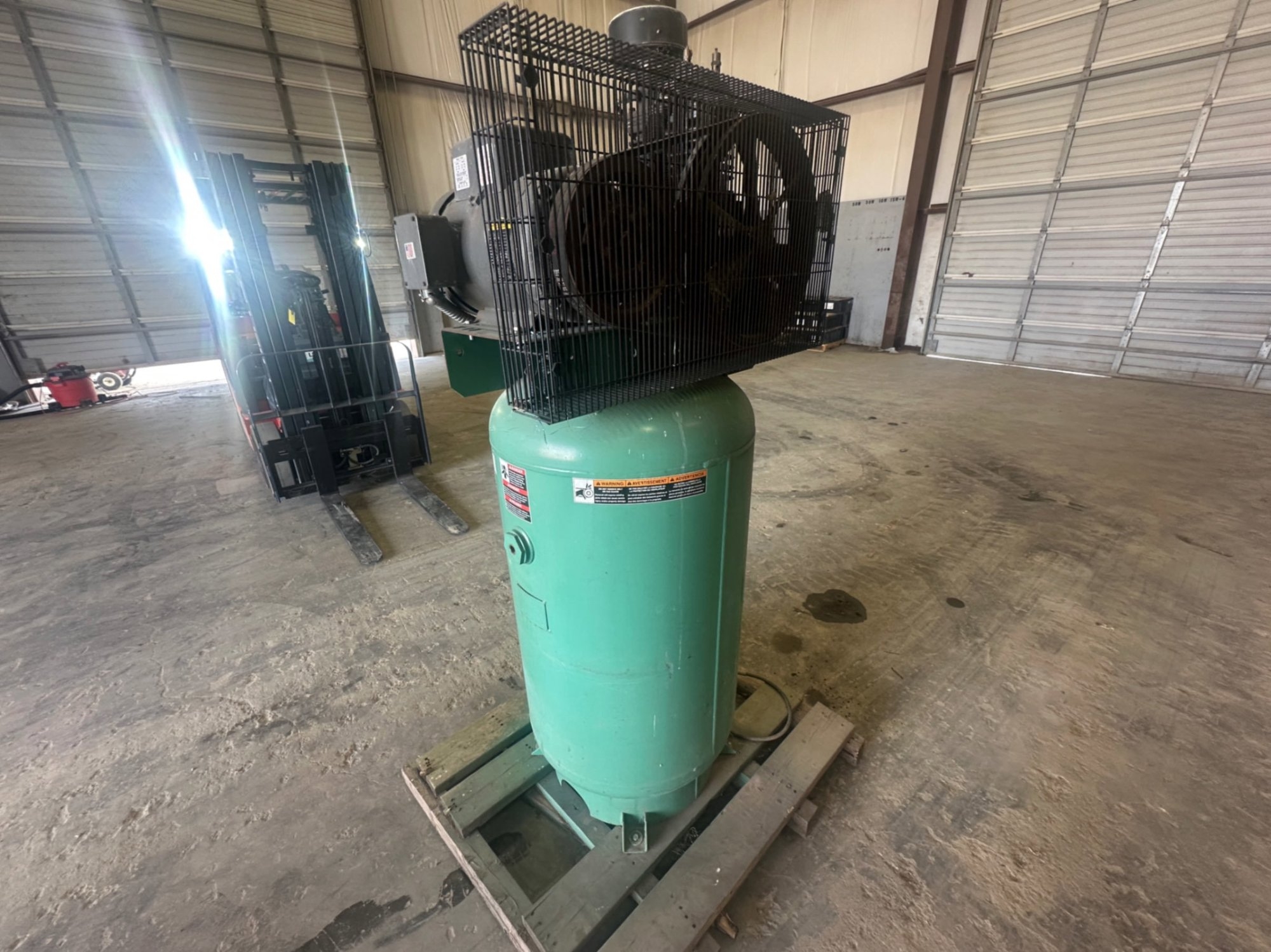 (Cleburne. TX) AIR COMPRESSOR VIN/SN: D134020, ENGINE, YES, SPEEDAIRE 4XA60 AIR COMPRESSOR, 230V SINGLE PHASE, 65.0A, 60HZ, 1PH, INDUSTRIAL ELECTRIC UNIT, BELT-DRIVEN 2-STAGE PUMP, 60 GAL VERTICAL TANK ITEM# 19562