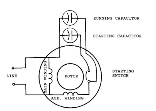 There's a pressure switch and there should be an unloader in that pressure switch. If its not unloading (bleeding off the air pressure in the area between the compressor and the tank), it can cause enough pressure that the motor can't spin. Bleeding off the tank of all air pressure will let you skip by a bad unloader to test that theory......did so