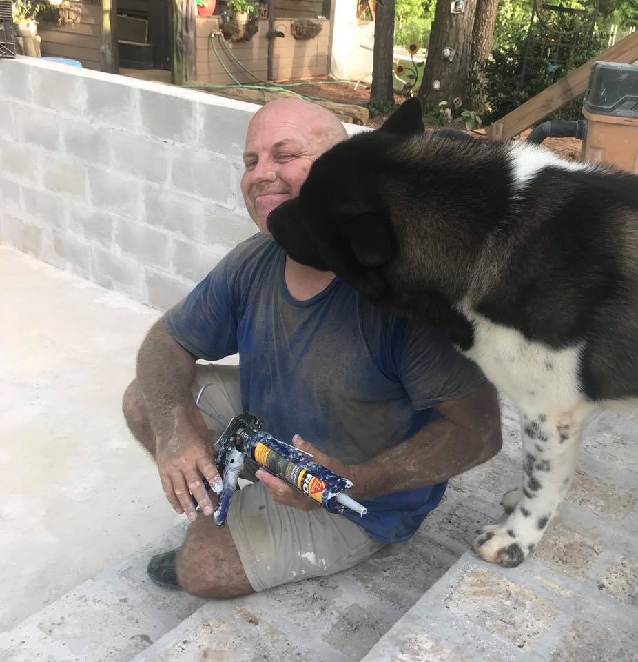 All that concrete grinding got you a bit dirty there my friend....but your dog still loves you.