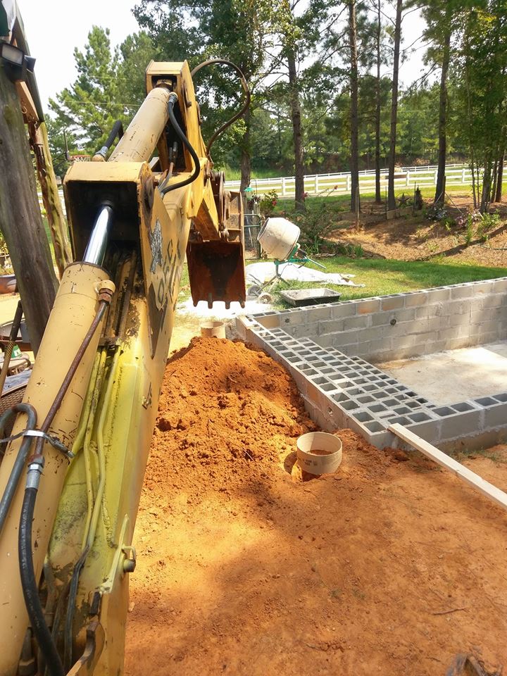 I dug my footings and set the sonotubes 1 1/2 inches above the finished concrete height. It's important to me that the posts remain as dry as possible. Then I brought some dirt over to start back filling and bringing the dirt up. The backhoe bucket is great for this. I don't get a lot of dirt compared to the loader bucket, but I do get it really close to where I want it.