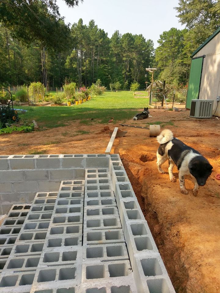 Before the snake, I got some work done on my footings for the porch. The porch will be 16 feet by 24 feet. The boy dogs, Matsu and Raidan, like to hang out with me more then the girl dogs. We have no idea why.
