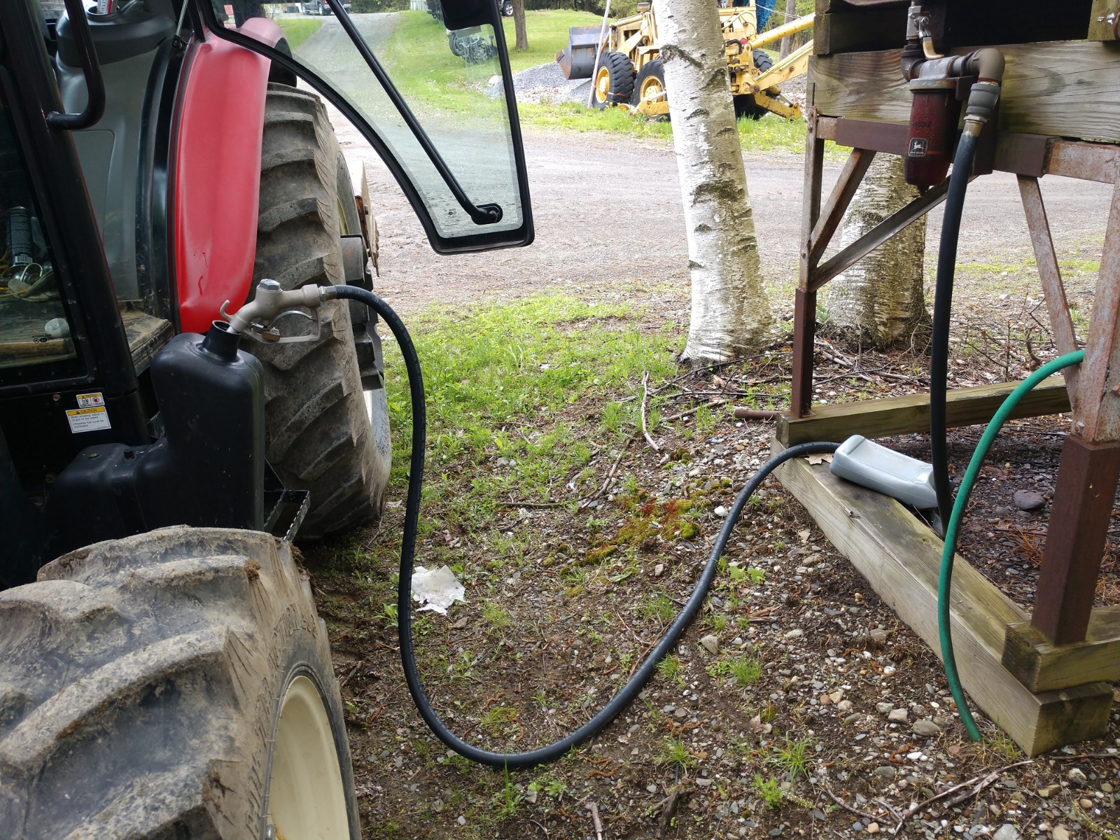 Nice set-up, 60 years old for tank and stand, now that's impressive that wood should've been rotted away 30 years ago, unless it's made of cedar even then that's a long time. With a old mans fuel tank on your tractor dont know if I'd need a transfer pump but if I had it I'd use it. I still cant decide if I'd want a the fuel tank in that location or not, I'd be afraid of banging it into a tree, stump or rock.