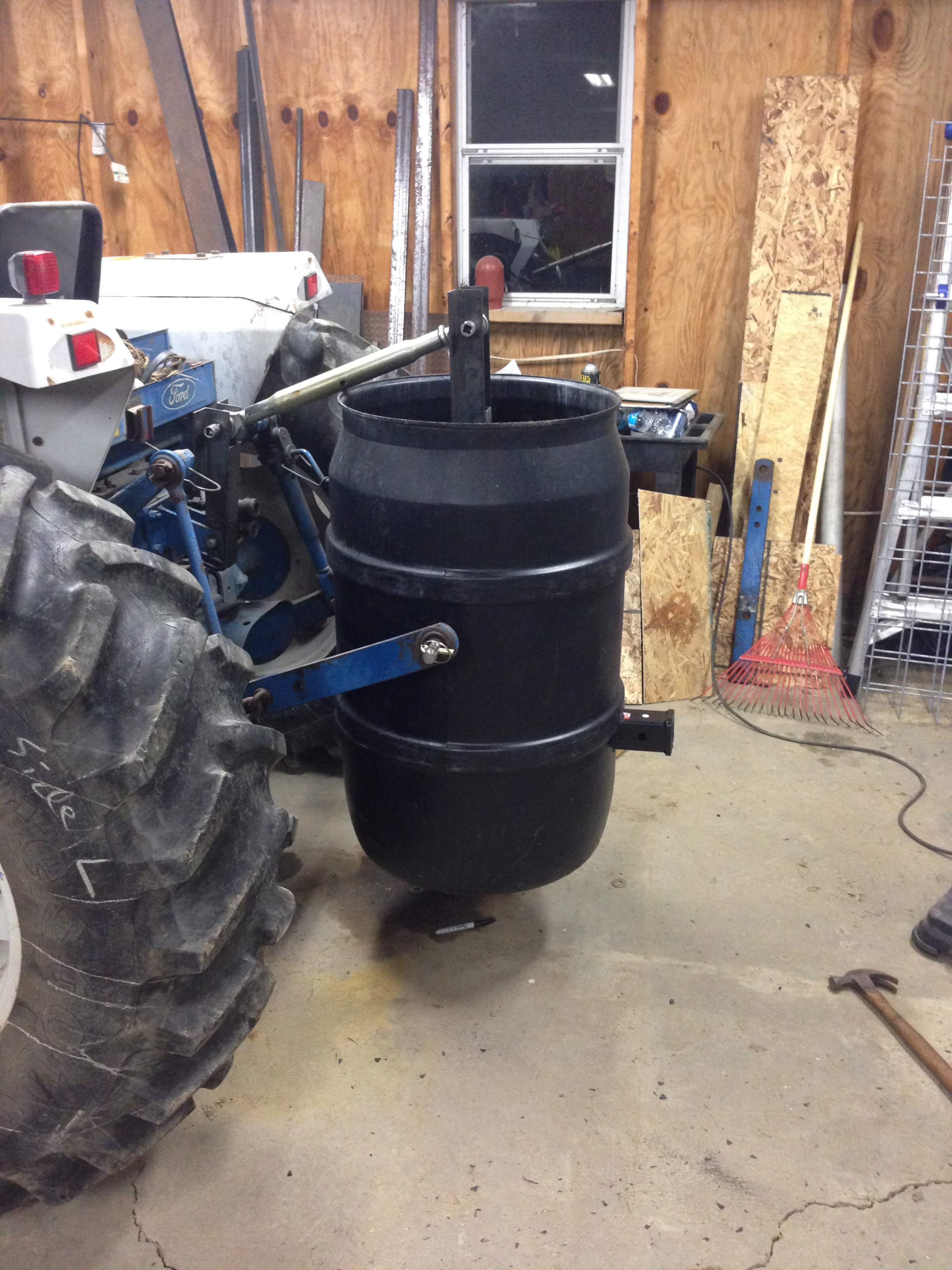 If you notice, the top of the "L" shape doesn't come above the edge of the barrel. I did this on purpose, and am building a bolt on section to attach the top-link. Anyone who has build a ballast barrel knows that the barrel is too tall to have a proper toplink attachment without barrel modification, so I built a bracket that raised my toplink as well. I can unbolt the bracket and run the ballast barrel without a toplink, allowing me to put a lid on it if the weather gets nasty and I still want the barrel on The geometry can be seen here: