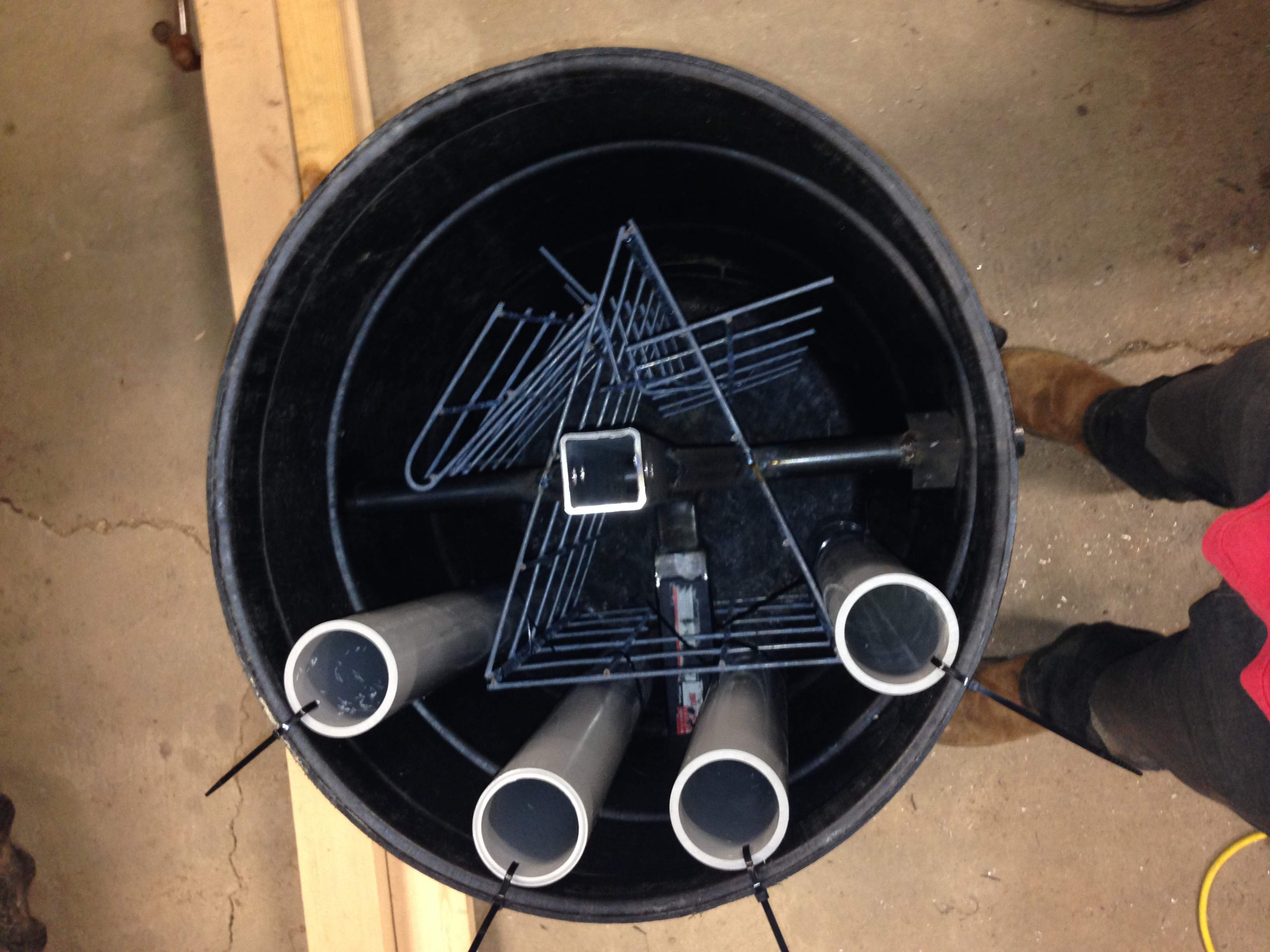 I also made a cage around this structure out of extra goat panel that I had, which is welded wire mesh about 3/16" in diameter. This also gave me a support for the PVC tubes until the concrete is poured: