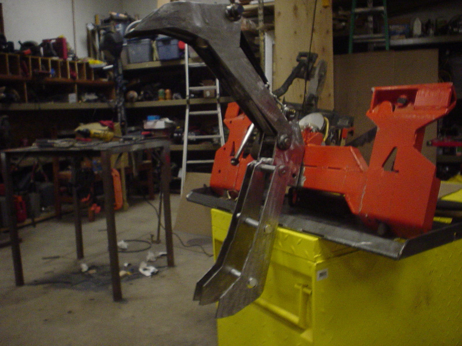 Welded a chain hook on so I can lower forks/arms on ground with grapple closed, then use upper arm opening up