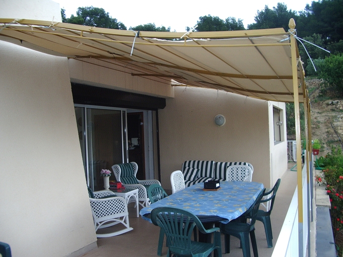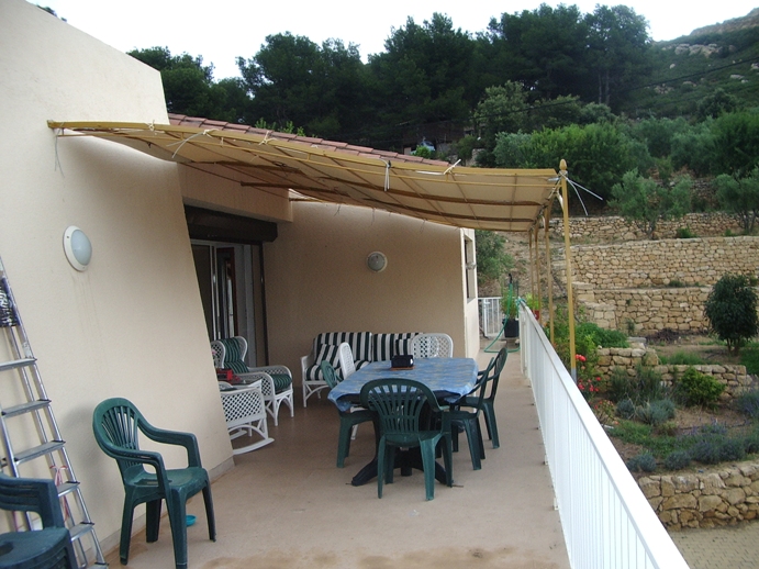 Finally we got some relief from the hot Provence sun. In May a local craftsman designed, built and installed a wraught iron pergola for us. I was in the states in May and brought home really really heavy tarps which i purchased at Cover Me Tarps and Canopies for the covering. I used tenders to connect the canvas to the frame.